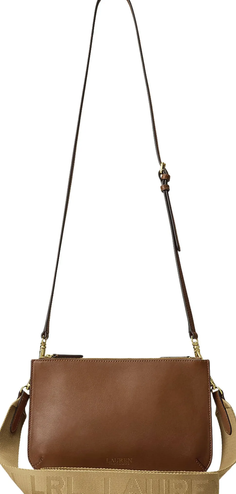 Den mellemstore Landyn-taske er kendetegnet ved sin konvertible karakter og er designet med to aftagelige og justerbare stropper – en overkropsstrop i læder og en “Lauren Ralph Lauren”-flettet rem – for flere Styling-muligheder. Den er perfekt til opbevaring af dine vigtigste ting og er fremstillet af smidigt fuldkornslæder, som er kendetegnet ved sin naturligt glatte finish