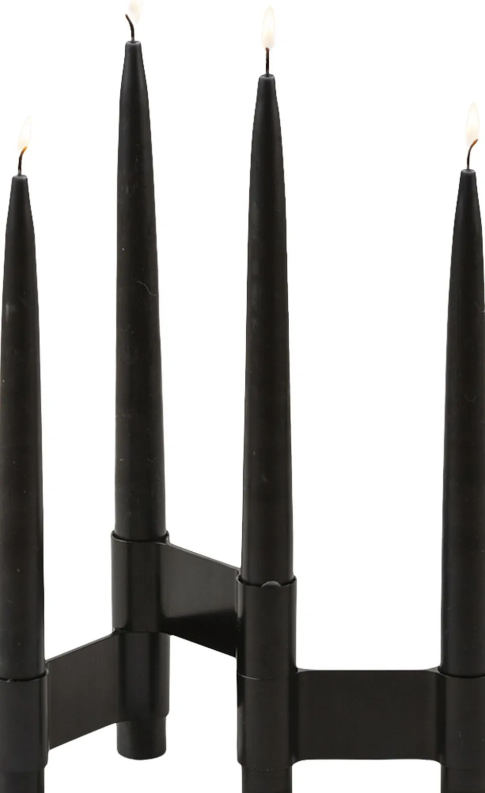 Serien af LINK lysestager er en kollektion af modulære stager, der kan stå enkeltvis eller sættes sammen til en større stage. Lysestagerne er lavet af aluminium og denne variant er i farven sort. EN SKULPTUREL LYSESTAGELINK stagen fås her i sort aluminium, og har et stilrent og enkelt udtryk. Selve stagen er 4 cm høj og kan derfor sagtens bruges på spisebordet, du kan nemt justere bredden og volumen på lysetstagen ved at flytte på modulerne. Med den skulpturelle form står den også flot i sig selv, helt alene som enkelt LINK eller sammensat af flere moduler. INDRET MED METALLER Forsøg dig frem i indretningen med metaller. Materialet aluminium er et stilrent og smagfuldt materiale, der kan kombineres med mange andre objekter. Prøv dig frem og skab et stilleben med LINK stagen kombineret med lidt loppefund eller en glasvase, f.eks Standing bubble der med sin runde form vil bløde det rene udtryk lidt op. Med LINK stagen kan du skabe dit helt eget udtryk – modulerne sættes nemt sammen og man kan derfor også nemt ændre udtrykket når behovet for fornyelse melder sig. Man kan også sætte den sorte stage sammen med modulerne af messing eller sølv. Stagen findes i 4 forskellige anodiseringer – sort, mat guld, mat sølv og blank sølv.PAKKEN INDEHOLDERDu får 3 LINKS moduler pr pakke, hvilket giver plads til 4 lys. Du kan desværre ikke tilkøbe enkle links, da de er pakket i sæt af 3.MÅLStagen har standardmål og passer derfor eksempelvis til det klassiske kronelys. Du kan også bruges vores nye farvede glaslys.FARVE: Sort HØJDE: 40 MMLÆNGDE: 110 MMDIAMETER på røret: 23 MMVÆGT: 0,375 KG LINK kommer i en diskret papæske så de let kan pakkes og sendes, der er 3 moduler pr. pakke. Lysestagen er lavet af overfladebehandlet aluminium. Behandlingen beskytter metallet mod rust og UV stråler, lysestagen vil derfor beholde sin smukke glans og grå farve over tid.Studio About er et dansk designstudio og alle produkter er designet af arkitekt Mikkel Lang Mikkelsen.