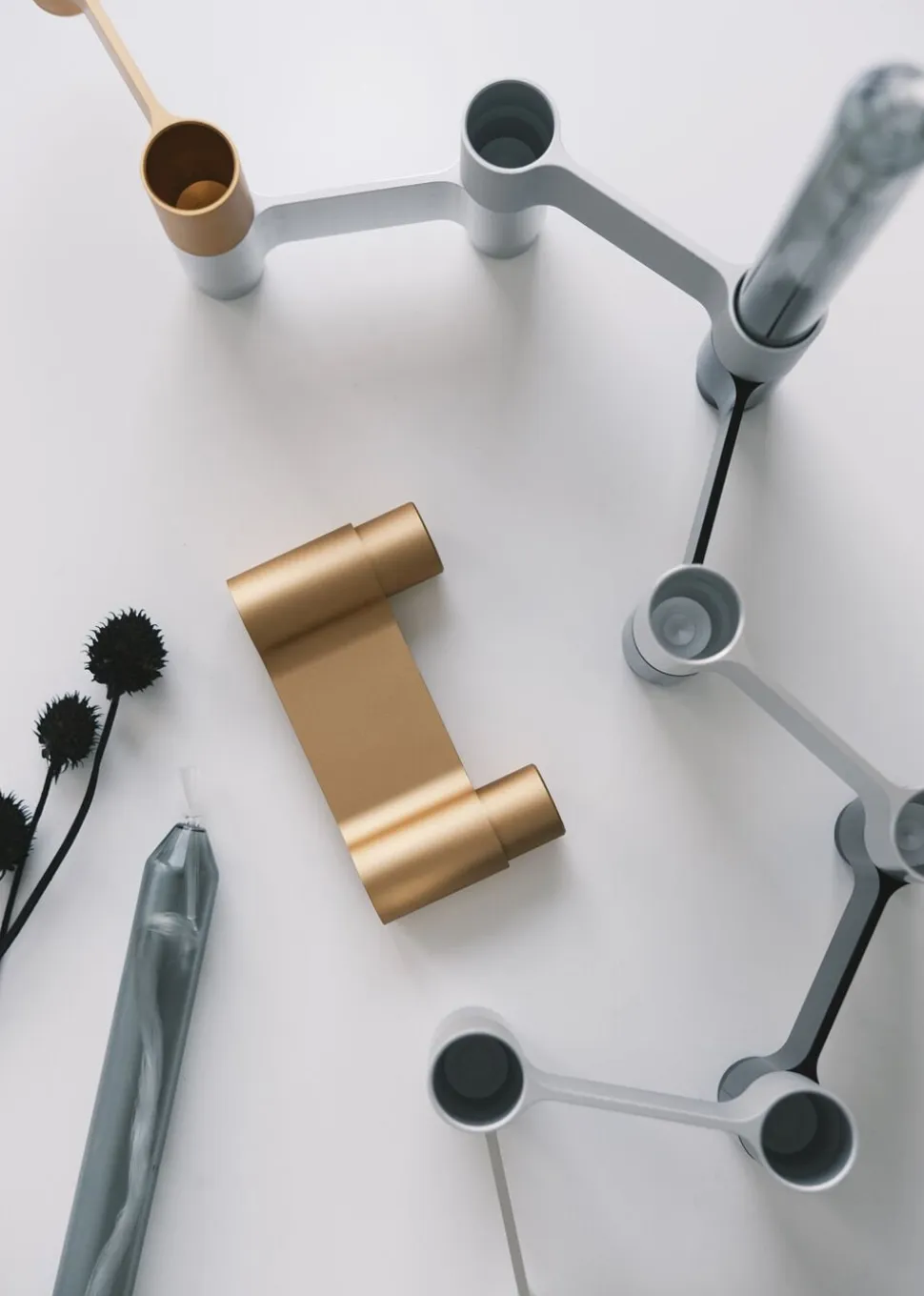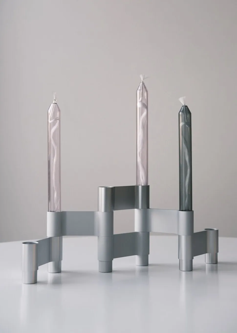 LINK lysestagerne er en kollektion af modulære stager, der kan stå enkeltvis eller sættes sammen til en større stage. Lysestagerne er lavet af aluminium og designet af arkitekt Mikkel Lang Mikkelsen.Den skulpturelle lysestage fås her i blank sølv, der med sit enkle og moderne udtryk passer ind i de fleste nordiske hjem. INDRET MED METALLERLINK lysestagen består af 3 moduler, der sættes sammen til én stage. Man har derfor fuld frihed til at skabe sin egen stage – enten med de 3 moduler der medfølger i denne pakke eller ved at sætte flere stager sammen. Lysestagen fås også i mat guld, sort og mat sølv. Man kan sagtens sammensætte forskellige metaller for et anderledes udtryk og variation. De smukke metaller indgår smukt i indretningen og i et miks med træ og tekstiler giver de både varme og personlighed. Lysestagerne kan bruges med et klassisk kronelys eller med lange slanke lys – vælg lys i din yndlingsfarve og brug dem i et lille stilleben eller på spisebordet, hvor stagens højde gør den meget velegnet. For et stramt og stilrent udtryk kan du bruge vores olielys lavet i glas, glassets gennemsigtighed giver stagen et mere blødt udtryk. PAKKEN INDEHOLDERDu får 3 LINKS moduler pr pakke, hvilket giver plads til 4 lys. Du kan desværre ikke tilkøbe enkle links, da de er pakket i sæt af 3.Stagen har standardmål og passer derfor eksempelvis til det klassiske kronelys. Du kan også bruges vores nye farvede glaslys.MÅLFARVE: Poleret grå HØJDE: 40 MMLÆNGDE: 110 MMDIAMETER på røret: Ø 23 MMVÆGT inkl. emballage : 0,375 KGStagen kommer i en enkel og stilren æske og kan derfor nemt sendes og fragtes. Lysestagen er lavet af overfladebehandlet aluminium. Behandlingen beskytter metallet mod rust og UV stråler og vasen vil derfor beholde sin smukke glans og blanke grå farve og holde sig pæn over tid.Studio About er et dansk designstudio og alle produkter er designet af arkitekt Mikkel Lang Mikkelsen.
