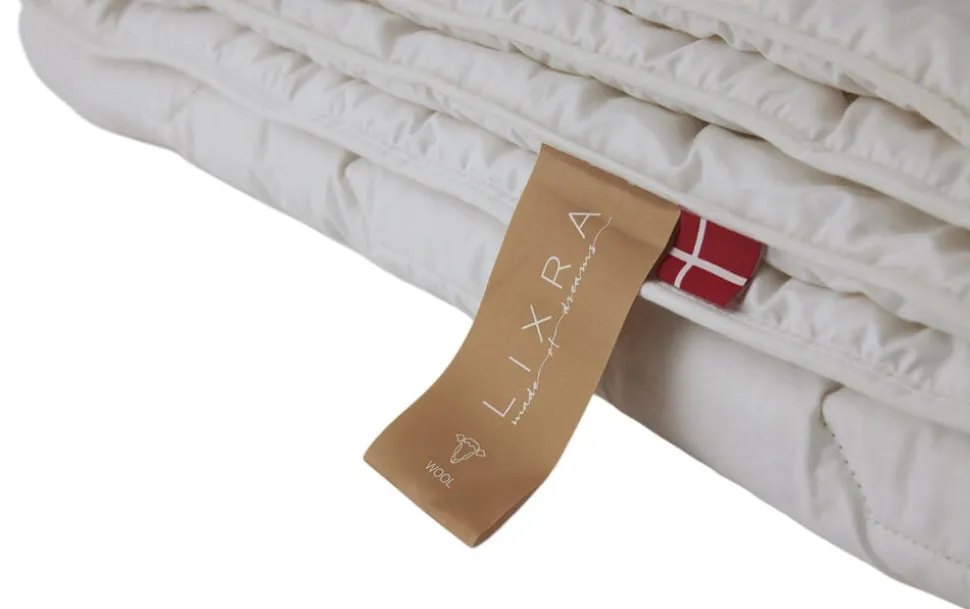 LIXRA Wool Uld dyne, let 140×200 cm: Lækker dyne med 700 g 100 % Ny Fransk uld fra får som lever og græsser i den fri natur det meste af året. Våret er af 100% Bomuld med ekstra blød Italien finish, hvilket giver et lækkert blødt og åndbart produkt. Hold hovedet koldt og kroppen varm med denne Dansk produceret LIXRA Wool Uld dyne, som holder dig varm hele natten året rundt. Dynen er Oeko-Tex certificeret. En dyne til dig, hvor kun det bedste fra naturen er godt nok.