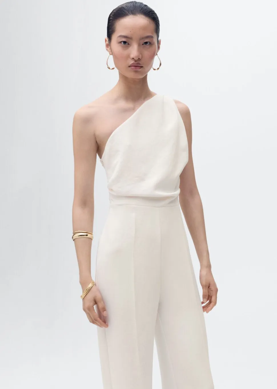 Long asymmetrical draped jumpsuit