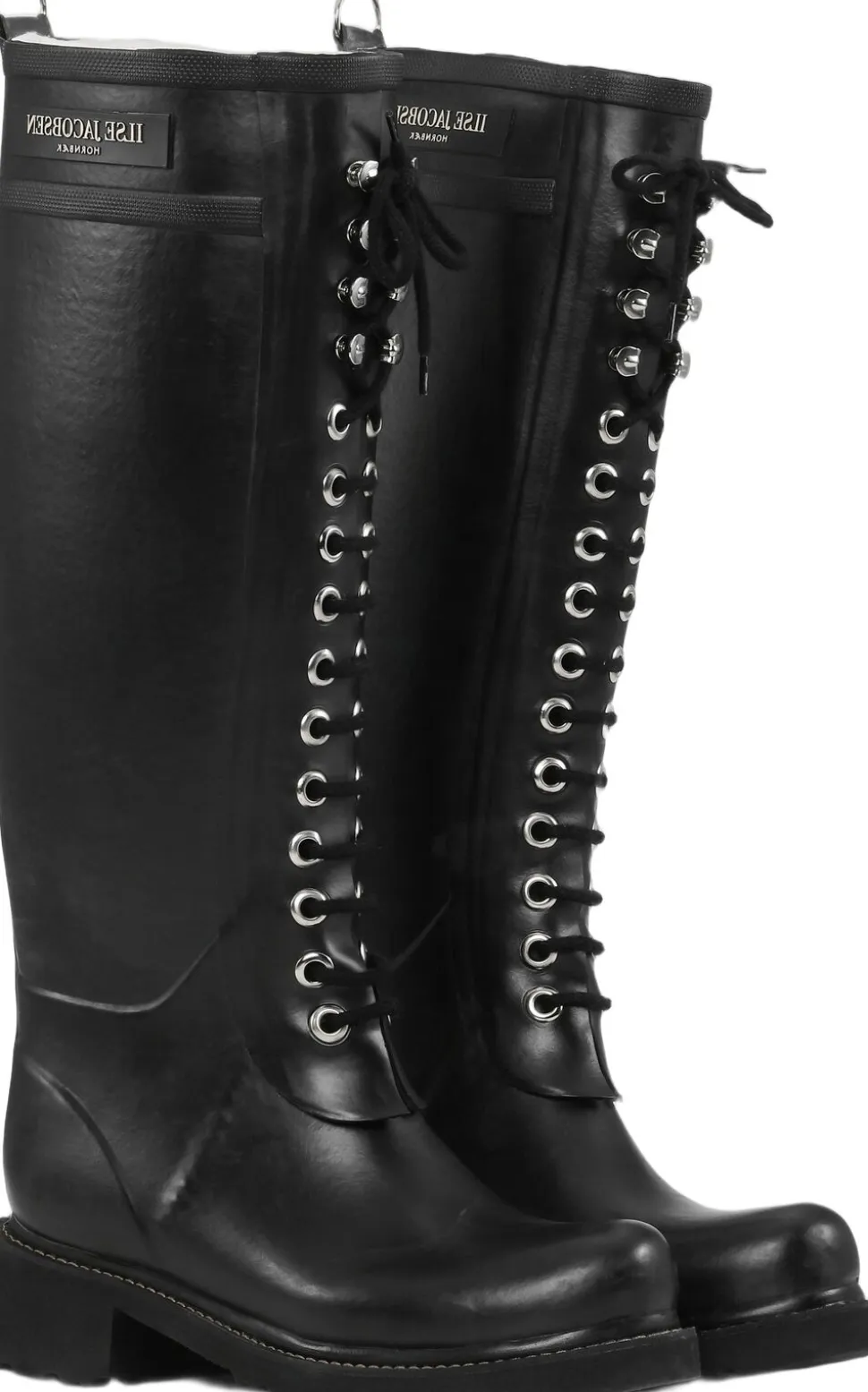 Høje gummistøvler med snøre. Wellingtons er lavet af den fine