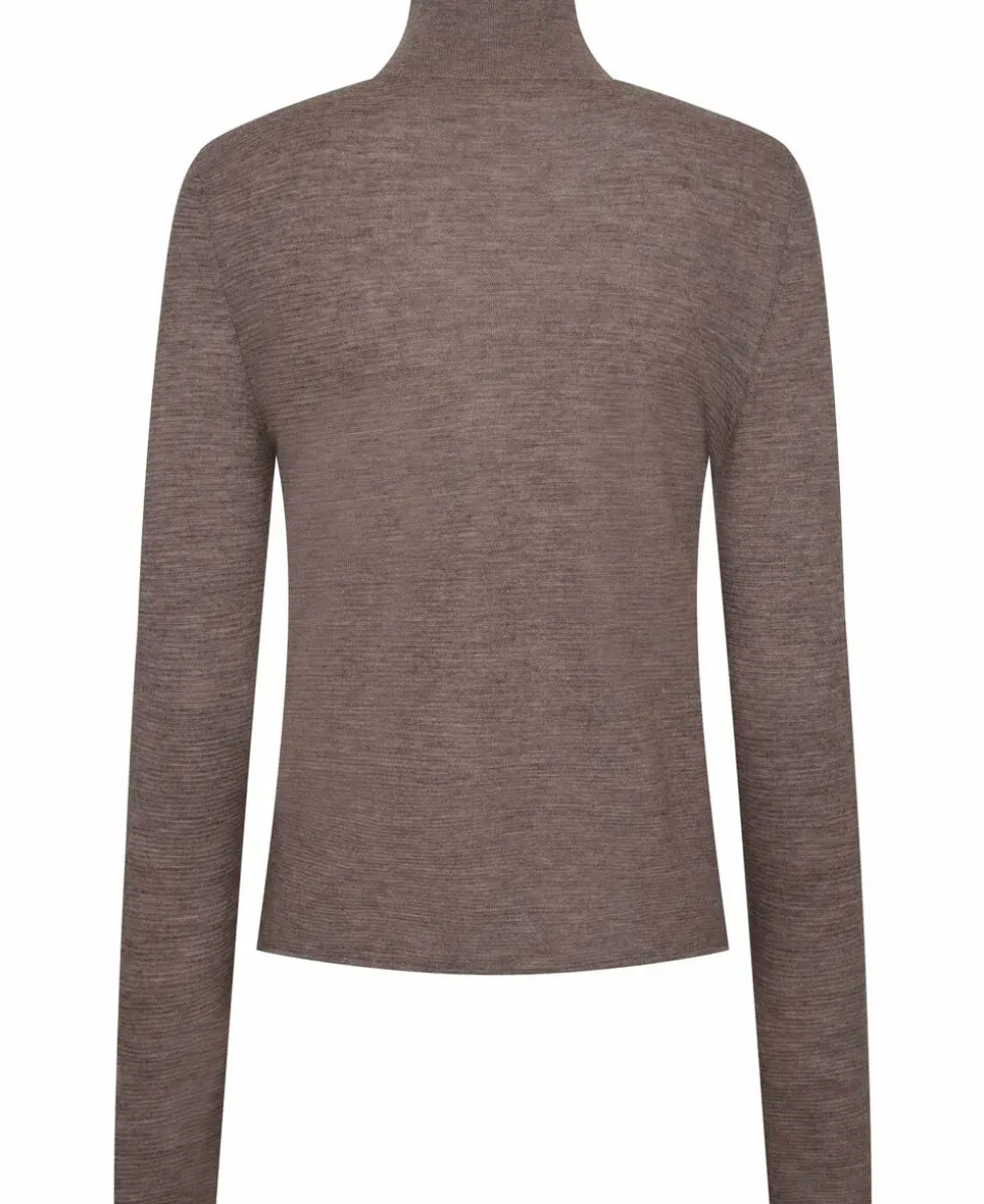 Høj hals, ærmer i fuld længde, tilpasset, omvendt vandret rib, ribkanter, 18 GG 1 PLY Fine Strnit