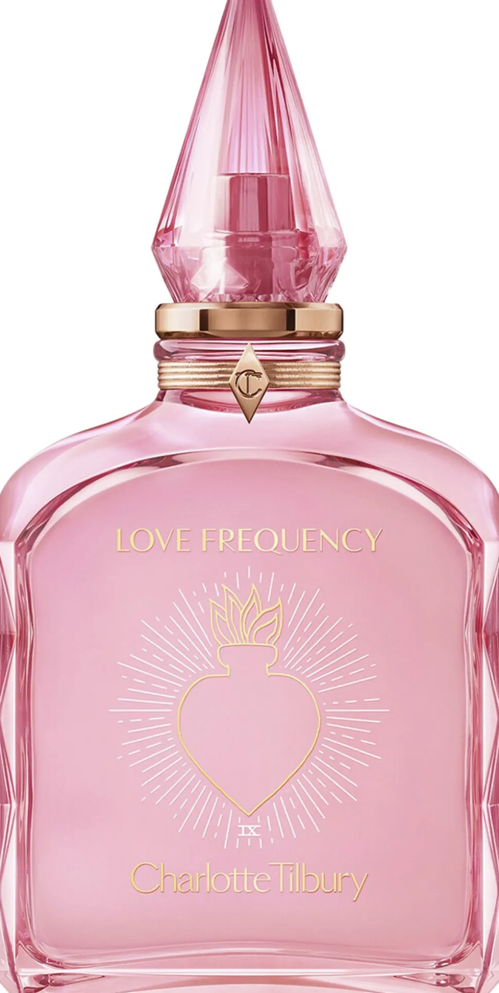 Love Frequency er en dosis kærlighed på flaske! Denne fortryllende duft flyder over af kærlighed og er både blomsteragtig, delikat og hypnotisk. Den fremkalder den betryggende og universelle følelse af at elske og være elsket! Denne blomster- og træagtige duft hensætter dig til et varmt univers fyldt med kærlighed, som er sammensat af molekyler, der øger følelsen af kærlighed, såsom roseessens og kashmirtræ. Historien er inspireret af gudinden Venus, og denne delikate, fortryllende duft flyder over af kærlighed og får dit hjerte til at slå hurtigere! Charlotte ønskede at skabe noget blidt, men kraftfuldt, noget vanedannende, som du og dine kære har lyst til at dufte til uden mådehold. Duftfamilie: træagtig blomstret Magiske duftnoter: Top: vanedannende rosa peber Hjerte: sensuel safran, romantisk Rose Ultimate Extract, hypnotiserende rosenessens Base: sensuel moskus, fortryllende cashmeran, fængslende ravtræ, uimodståeligt patchoulihjerte Flasken – Lyserød, den universelle kærligheds farve, repræsenterer venskab, romantik og medfølelse. – Tallet 9 på flasken repræsenterer ubetinget, dyb og lidenskabelig kærlighed. – Det hellige hjerte repræsenterer uendelig og lidenskabelig kærlighed til menneskeheden. Flammerne repræsenterer et hjerte, der brænder af kærlighed. – Morganit bringer helbredelse, medfølelse, sikkerhed og løfte! Som hjertets krystal inspirerer den os til at udleve betingelsesløs kærlighed!
