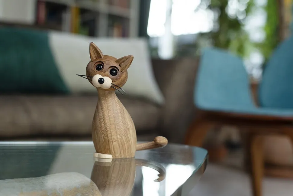 Lucky giver liv og personlighed til din vindueskarm med sine livagtige øjne. Lucky er et unikt håndlavet og håndsamlet træprodukt i eg og ahorn. Lucky er opfølgeren til hunden Happy, og vi kan godt garantere, at de både er gode venner og nemt kan stå sammen i vindueskarmen. Lucky er helt sin egen. Ligesom andre katte har den personlighed og udstråling, der skinner igennem. Hun giver din vindueskarm liv og personlighed, når hun med sine livagtige øjne skuer ud over rummet. Det er interiør, der er skabt til at skabe glæde hos køberen eller modtageren. Designeren Chresten Sommer har selv haft katte og er meget fascineret af dem. Det ene øjeblik er de kærlige og selskabelige, det næste øjeblik et vildt rovdyr på jagt. De kan klare sig selv.