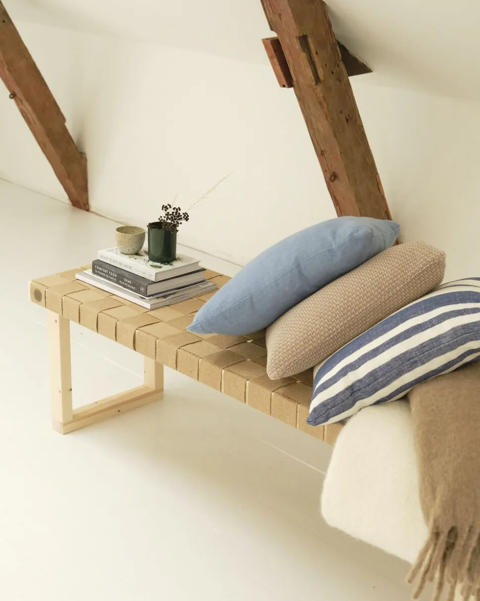 Bænk fremstillet af 100% rest træ samt med håndflettet sæde af OEKO-TEX Certificeret hør, som er med til at give et unikt udtryk. Alle bænke fra Wecycle Furniture er udelukkende dansk produceret.