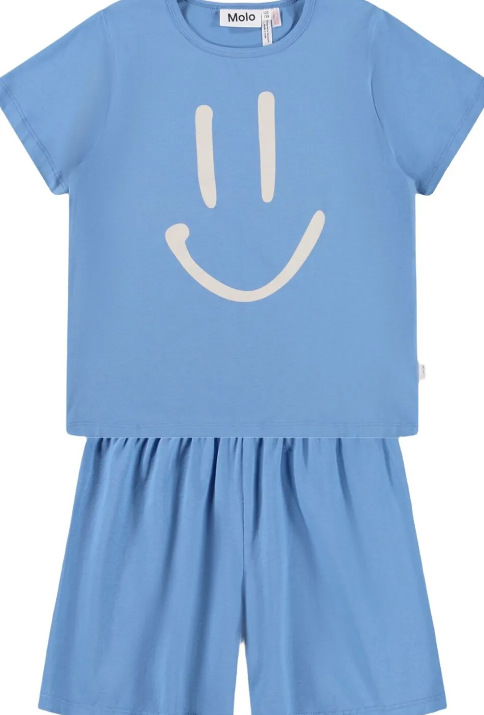 Nattøj sættet består af en komfortabel t-shirt med rund hals og et par shorts, der har elastik i taljen, hvilket gør dem ideelle til legen og afslapning. Det strækbare, bløde bomuld sikrer, at dit barn kan bevæge sig frit og komfortabelt, uanset hvad dagen bringer. Perfekt til lune nætter og hyggelige stunder derhjemme.