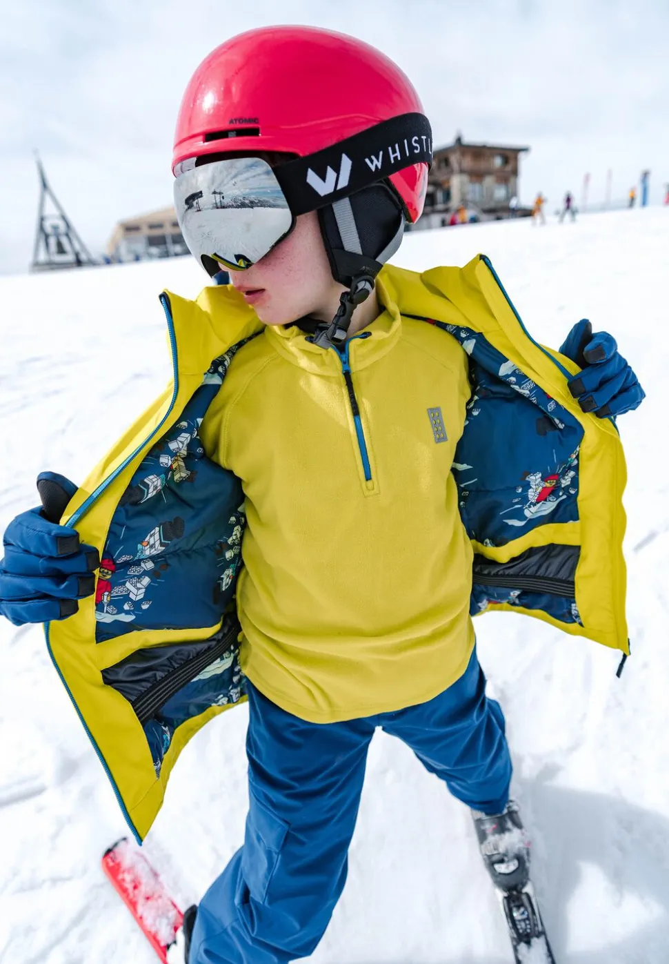 - I størrelserne 98/104-134/140 er der et sikkerhedsspænde til at klikke vanten fast på ærmet af LEGO flyverdragter og skijakker