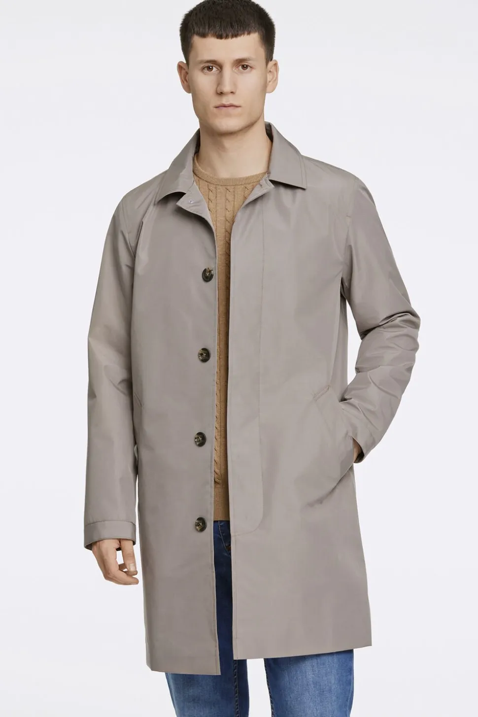 Let mac coat fra Lindbergh i enkelt og elegant design. Jakken lukkes med skjulte knapper og har en enkelt inderlomme med lynlås. Der er to åbne sidelommer samt en slids bagpå for bedre bevægelsesfrihed.