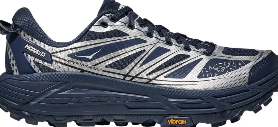 MAFATE SPEED 2 blev bygget til at yde støtte og stødabsorbering i teknisk terræn over enhver distance. Denne opdatering har en dyb, aktiv fodramme, der giver støtte, og en tunet meta-rocker, der gør det nemt at skifte mellem gangcyklussen. Ydersålen bruger dybe, fleksible riller til at tilpasse sig en række terræner, og 5 mm Vibram Mega-Grip-mønsteret giver et godt greb selv de vanskeligste overflader. MAFATE SPEED 2 er klar til at præstere kilometer efter kilometer, uanset hvor langt dit eventyr på sporet fører dig