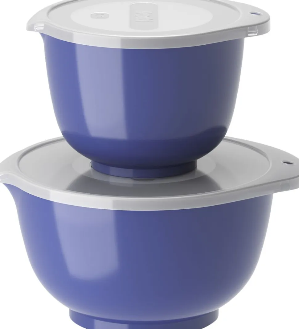 Margrethe røreskålesæt fra Rosti i 2 af de mest anvendte størrelser. Sættet indeholder 1,5 + 3 liter Margrethe-skåle med tilhørende låg. Margrethe-skålen er den klassiske røreskål med det gode greb, den praktiske hældetud og den skridsikre bundring. Den nye version af Margrethe-skålen er fremstillet i Durostima®, et genanvendeligt plastmateriale. Skålen er nu endnu stærkere og mere brudsikker, og med det nye materiale kan den også tåle mikroovn og fryser. Margrethe-skålen er velegnet til såvel tilberedning som servering, og tilkøbes der låg, er røreskålen omdannet til en praktisk opbevaringsskål.