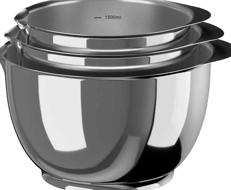 Flot og eksklusivt sæt i stål af den kendte og elskede Margrethe-skål – 1,5 + 2 + 3 liter. Skålen er produceret i 18/8 stål og har satin-finish indvendig og blank finish udvendig. Kan vaskes i opvaskemaskine og bruges i fryser, men ikke i mikroovn.