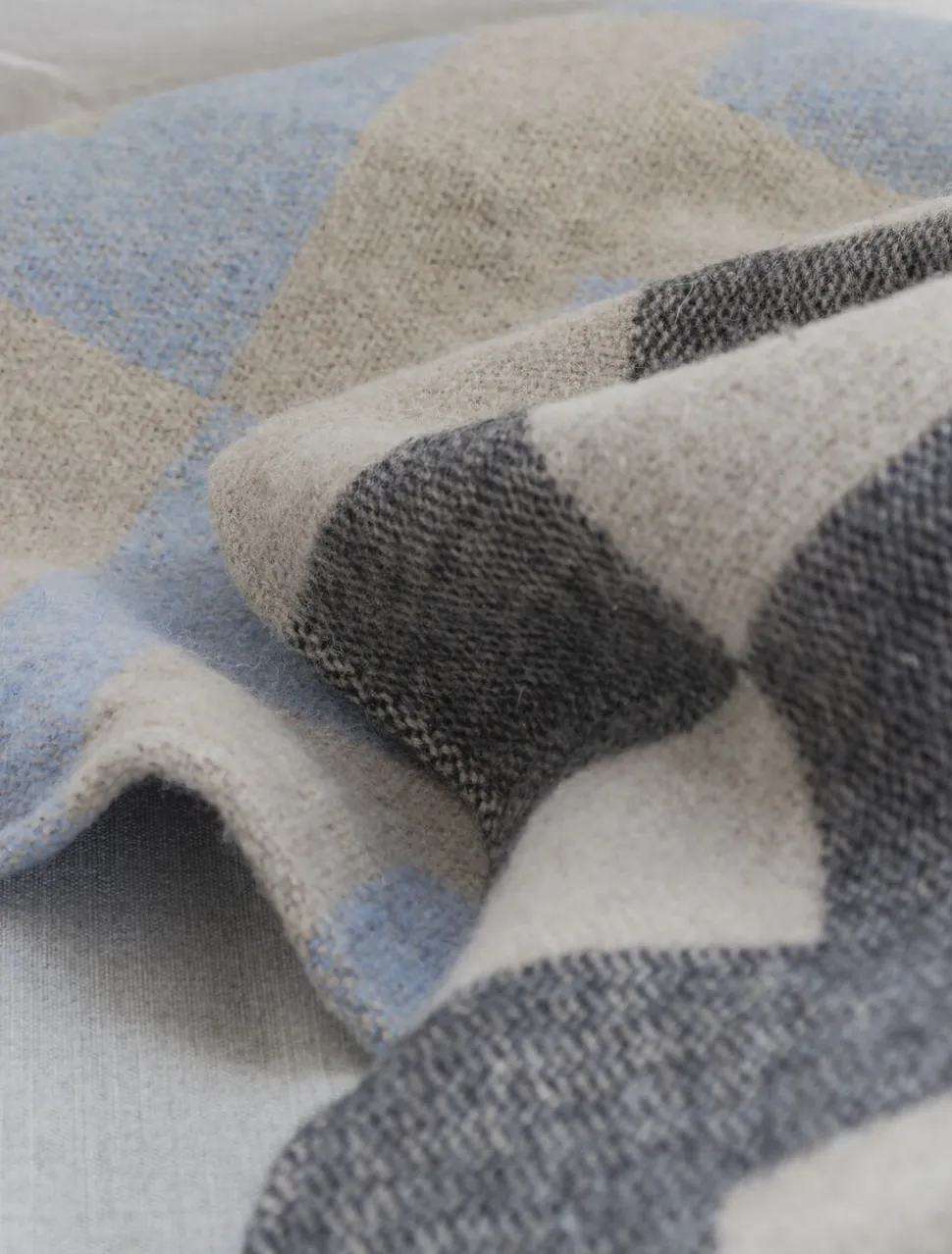 Oplev den ultimative følelse af luksus og komfort med MAZE-plaiden fra Mette Ditmer. Med sin base i en beroligende sandfarve, akkompagneret af et grafisk mønster i lyseblå og mørkegrå toner samt en kontrastbort i lysebrun, tilfører MAZE en subtil elegance til din indretning. Denne farvepalette er nøje udvalgt for at skabe en afslappet, men raffineret atmosfære.