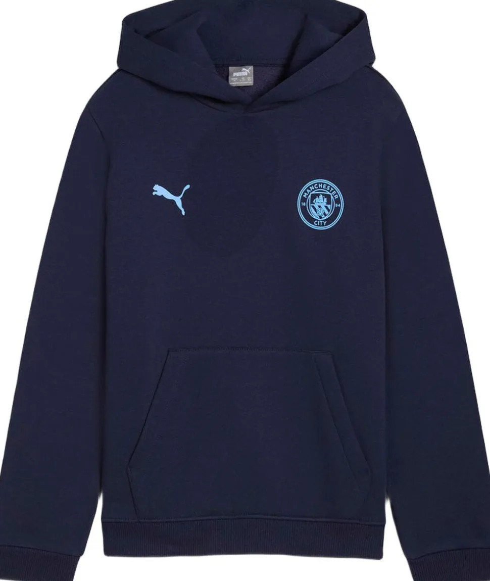 Manchester City Hættetrøje fra PUMA kombinerer autentisk klubånd med høj komfort og funktionalitet. Denne fleeceforede hættetrøje har en regular fit, der passer til både mænd og kvinder, og er designet med fuld lynlås, justerbar hætte samt ribkant ved ærmer og bund for optimal pasform. Praktiske sidelommer giver plads til småting, mens den bløde jerseyfoer sikrer varme på kølige dage. Fremstillet i en bæredygtig blanding af bomuld og polyester, repræsenterer den både kvalitet og ansvarlighed. Med Manchester City-logoet og PUMAs ikoniske katte-logo viser du stolt din støtte perfekt til træning, kamp eller hverdagsbrug.