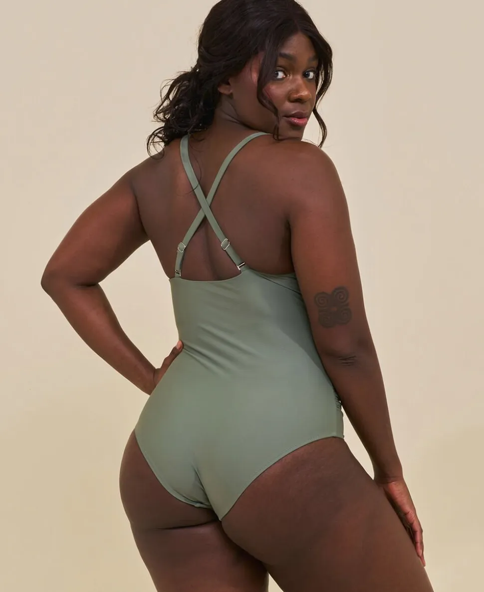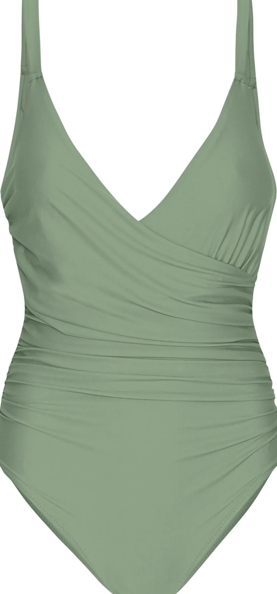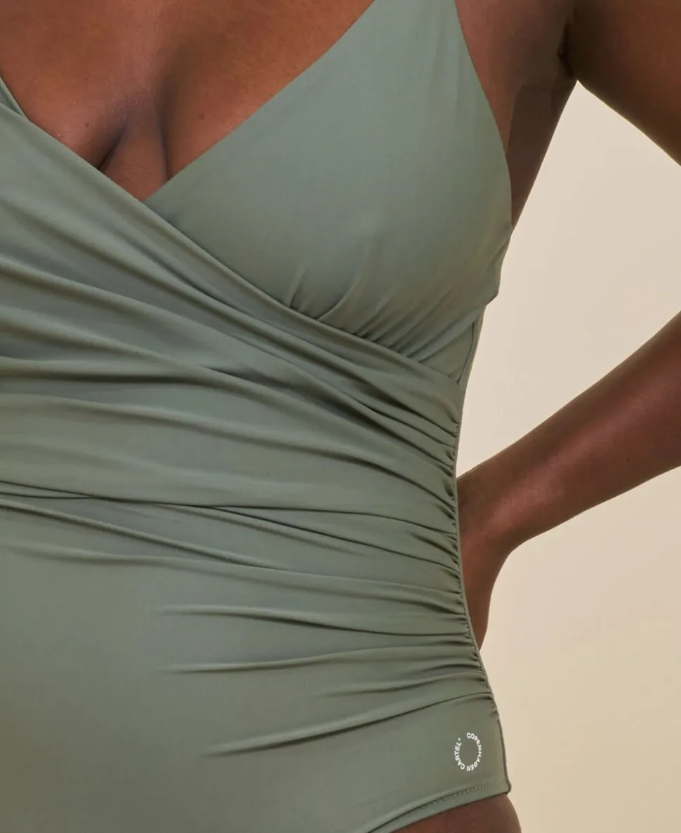 Medewi draperet badedragt er designet med en smuk draperet slå-om skæring. Dette gør den flatterende på alle kropstyper og kan også fungere perfekt som en body sammen med et par bukser eller en nederdel. Derudover har den brede justerbare stropper, som sikrer dig et perfekt fit. Medewi er syet med 2-lags stof af høj kvalitet, som føles fantastisk, er åndbart mod huden og samtidig støtter alle de rigtige steder. Produktet er skabt af ECONYL® regenereret nylon blandet med elastan.