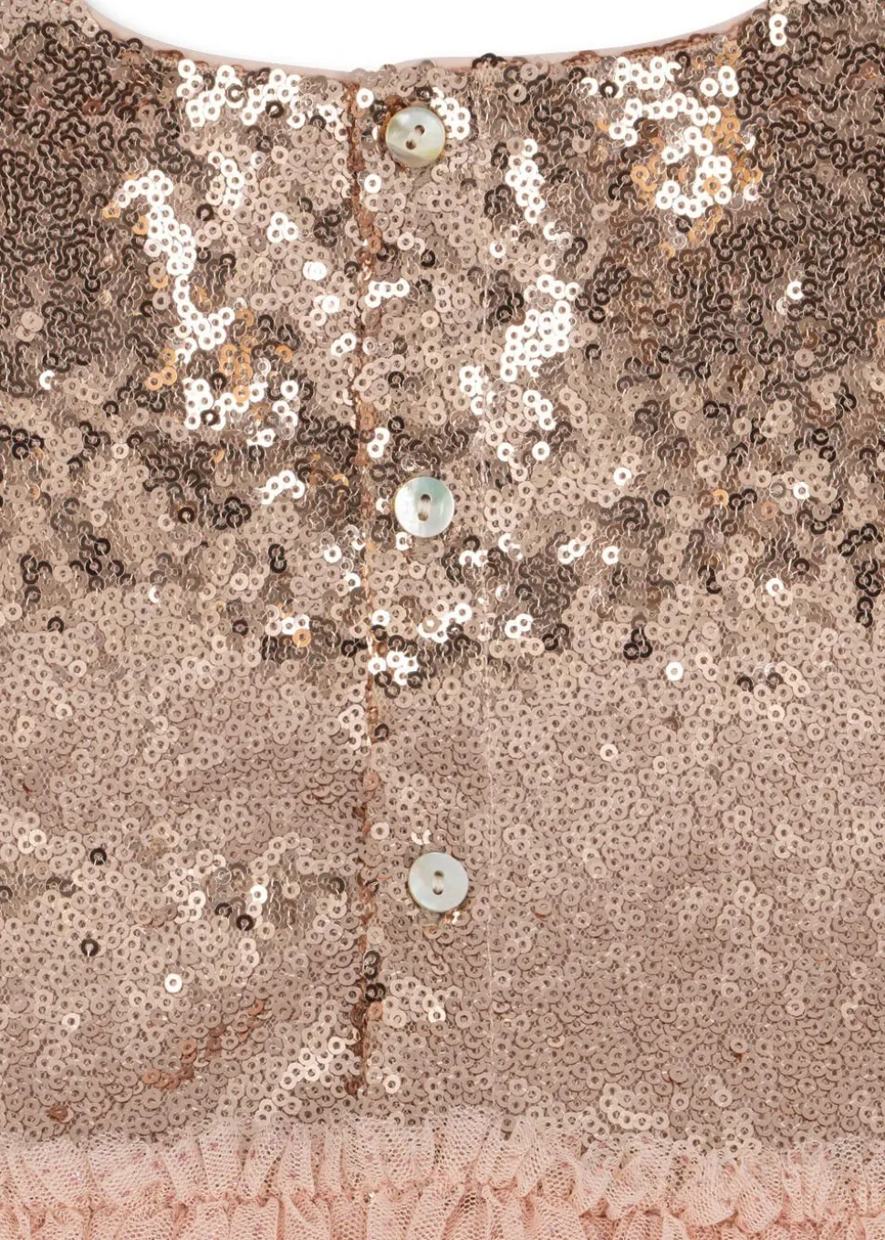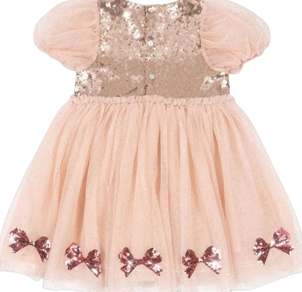 – Smukke detaljer: Den glitrende overdel og de fine sløjfer i bunden tilføjer et festligt touch, der gør kjolen til et hit blandt både børn og forældre.