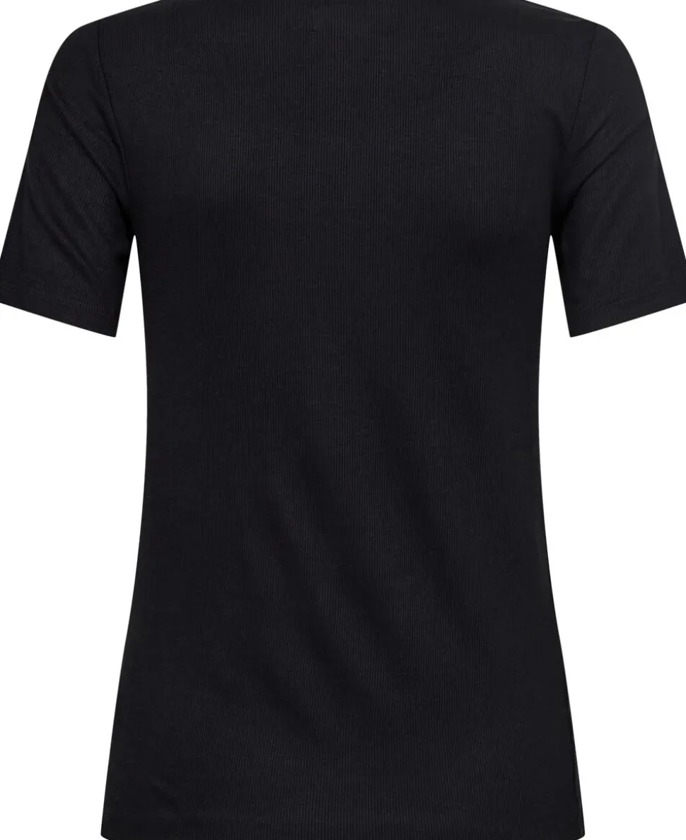 T-shirt fra Magasin du Nord Collection i den fineste kvalitet af 95% ECOVERO viskose. T-shirten er enkel i modellen med en fin ribbet struktur, korte ærmer, rib langs den runde halsudskæring samt en tætsiddende pasform. En skøn T-shirt, der er et musthave i basisgarderoben. ECOVERO is a trademark of LENZING AG. ECOVERO viskose er lavet af træer fra skove, der har fokus på ansvarlig skovbrug og ansvarlighed for mennesker og miljø. Selve processen, hvor træet omdannes til viskose, foretages i et lukket kredsløb og med en teknologi, der både nedbringer brugen af vand og gør det muligt at genanvende de kemiske stoffer, der indgår i processen.