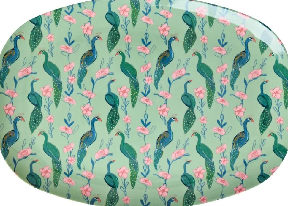Vores tallerken med rektangulær form i mønsteret “Peacock Power”. Tallerkenen er fremstillet af melamin, et robust materiale, der passer perfekt til daglig brug på grund af dets holdbarhed og nemme rengøring. Den kombinerer praktisk anvendelighed med et unikt design! Bemærk venligst, at produktet ikke kan anvendes i mikroovnen.