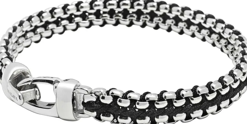 Black Woven Box-kædearmbånd til Herre i rustfrit stål med guldplade og lås i rustfrit stål med guldplade. Armbåndsbredde: 8 mm. Håndlavet i Los Angeles