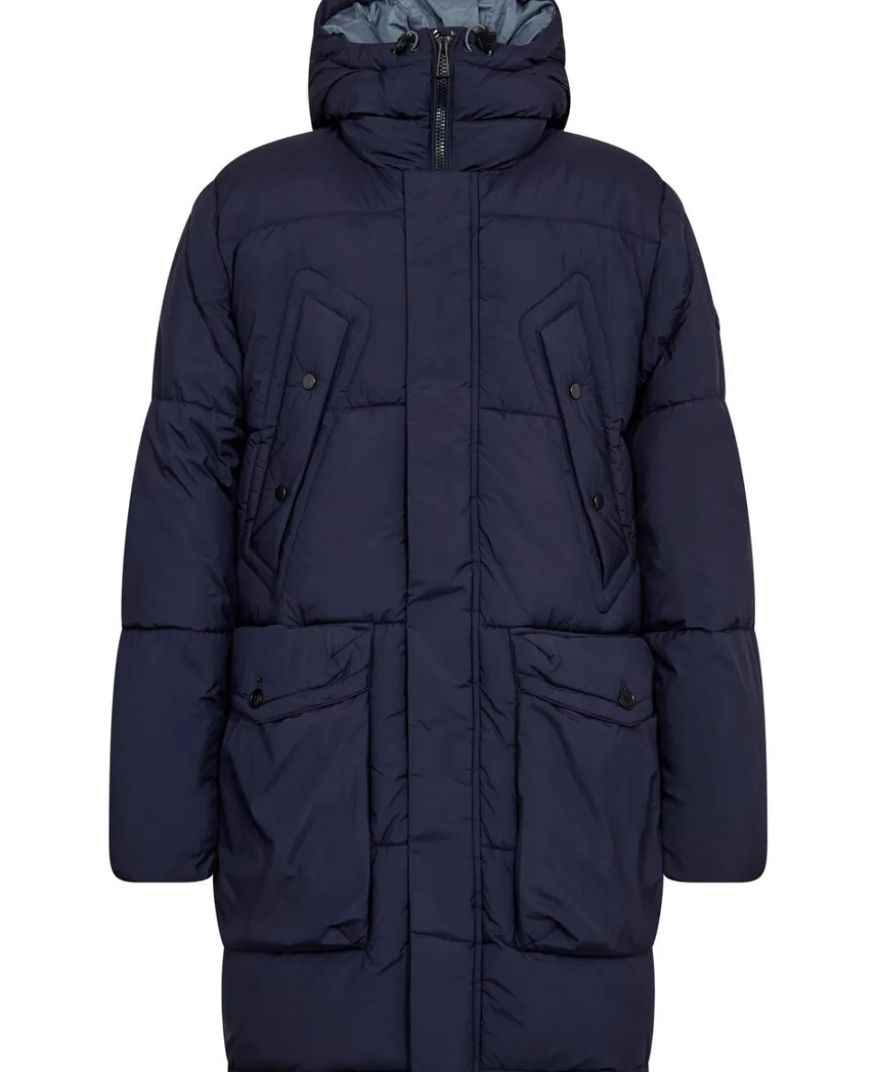 Vatteret jakke fra Paul Smith i en lækker kvalitet af 100% genanvendt materiale. Jakken er en klassisk parka med lynlåslukning og trykknapper, praktiske ind- og udvendige lommer, en smal elastikkant i ærmerne samt elastiksnører i hætten. En casual jakke i den lækreste kvalitet.