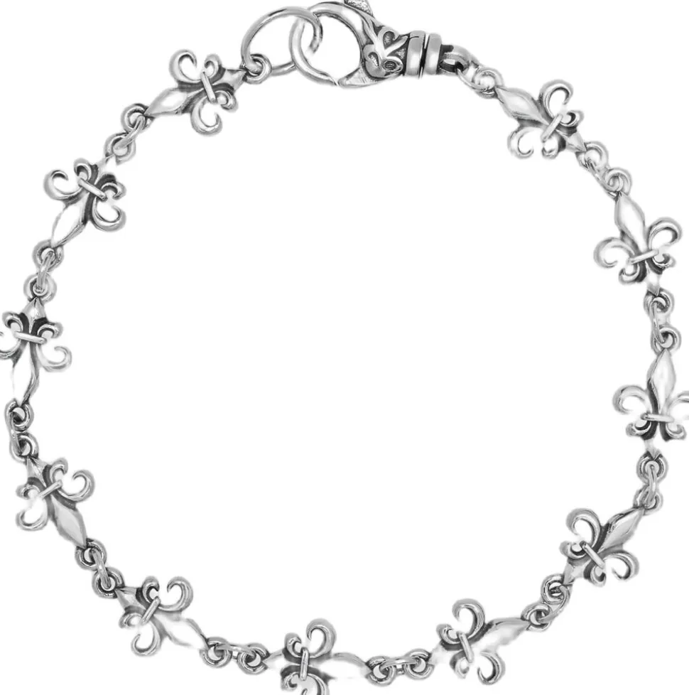 Forbundet armbånd til Herre i rustfrit stål med hummerspænde, Fleur de Lis-størrelse: 8×10 mm. Håndlavet i Los Angeles