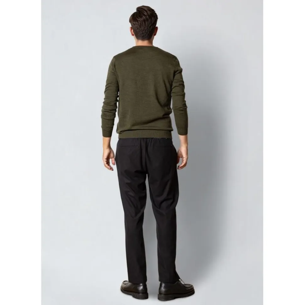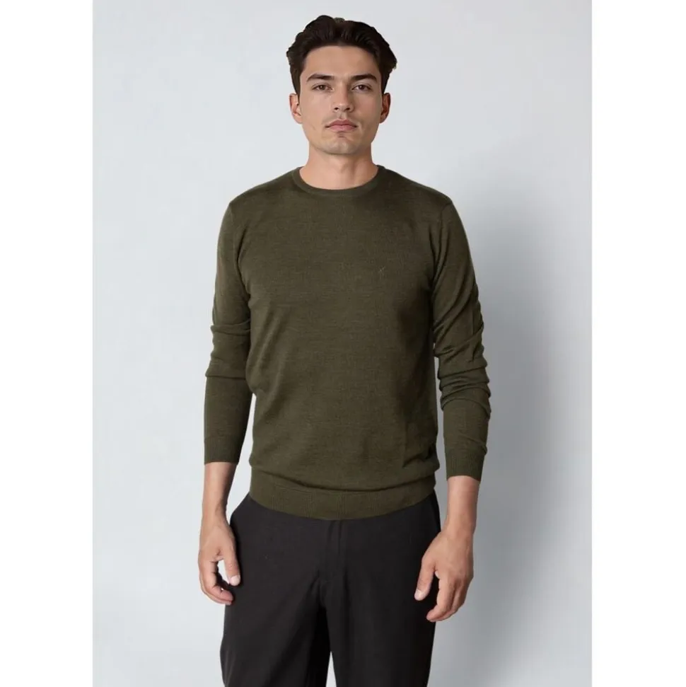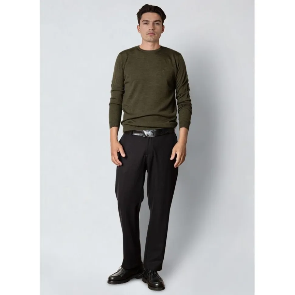 Strikket trøje fremstillet af en Premium merinouldblanding. Denne trøje er designet i en almindelig pasform og kombinerer komfort og stil. Merino uld, der stammer fra Merino får, er kendt for at være den fineste uld, der anvendes i luksustøj. Den transporterer naturligt fugt væk fra Krop og sikrer, at du har det behageligt hele dagen. Modellen er iført en størrelse L, 186 cm høj.