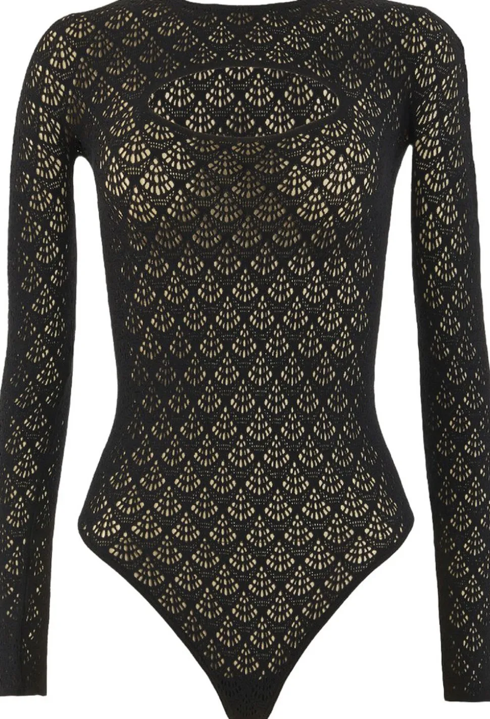 Krop med geometrisk mønster med Recycled ECONYL®-garn. En skarp elegance møder klassisk femininitet i denne sensationelle Krop dekoreret med et geometrisk skalalignende mønster for et trendy havfruelook. Det sømløse, matte stof er fremstillet af Recycled ECONYL®-garn ved hjælp af kædestrik