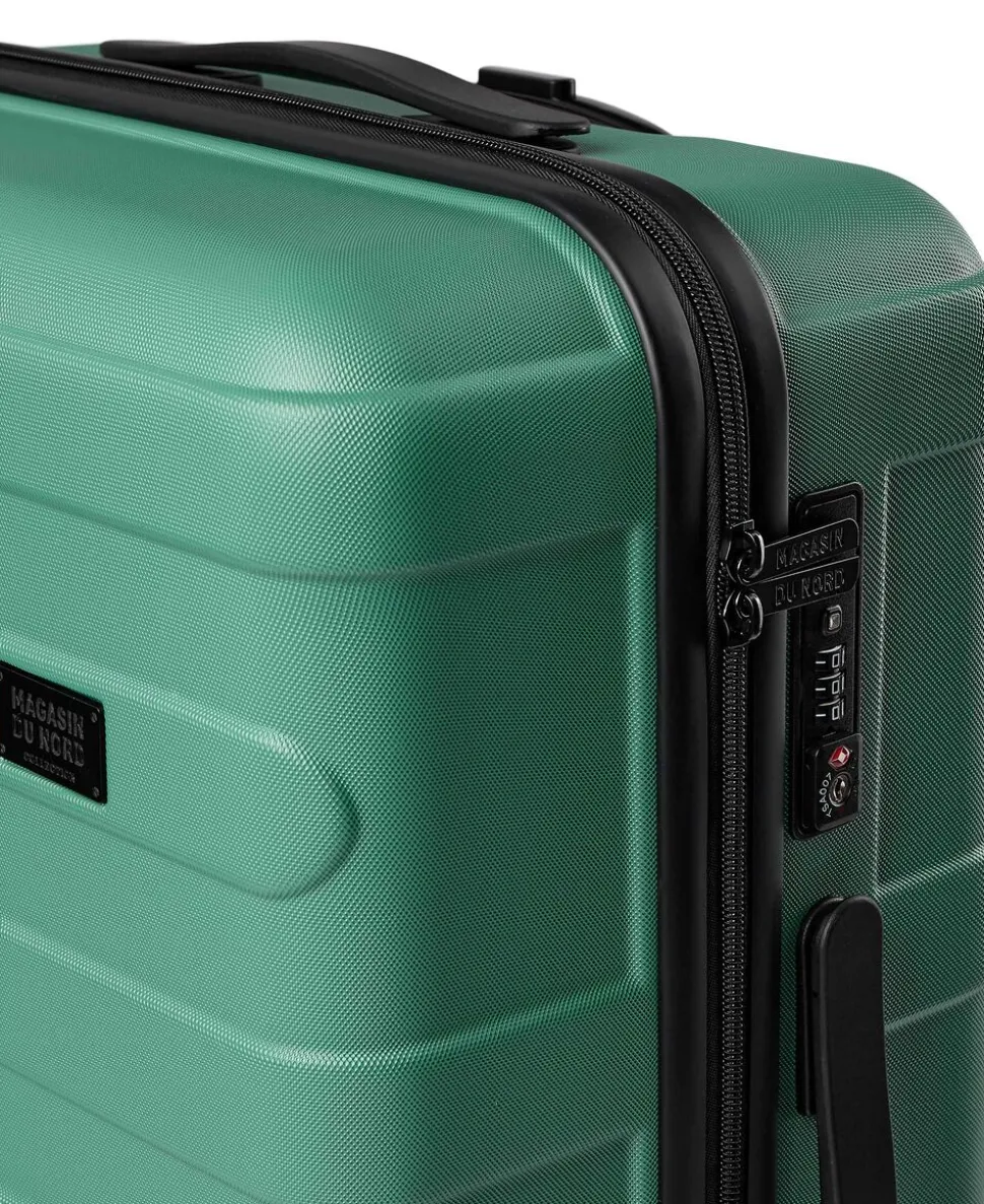 Kuffert fra Magasin du Nord Collection i en kvalitet af 100% ABS-plast, der sikrer en robust skal. Kufferten er fuldt foret i genanvendt RPET Polyester og består af et stort rum med lynlåslukning, flere indvendige lommer samt en indvendig strop, der sikrer at kuffertens indhold er fastgjort. Derudover har kufferten en TSA-kompatibel lås, en diskret logodetalje på fronten, et håndtag i side og top. Fire robuste og lette 360° spinnerhjul til nem manøvrering, dækkene er lavet i et holdbart materiale, der ruller jævnt på alle overflader. Samt et flertrins teleskophåndtag. 65x45x25 cm