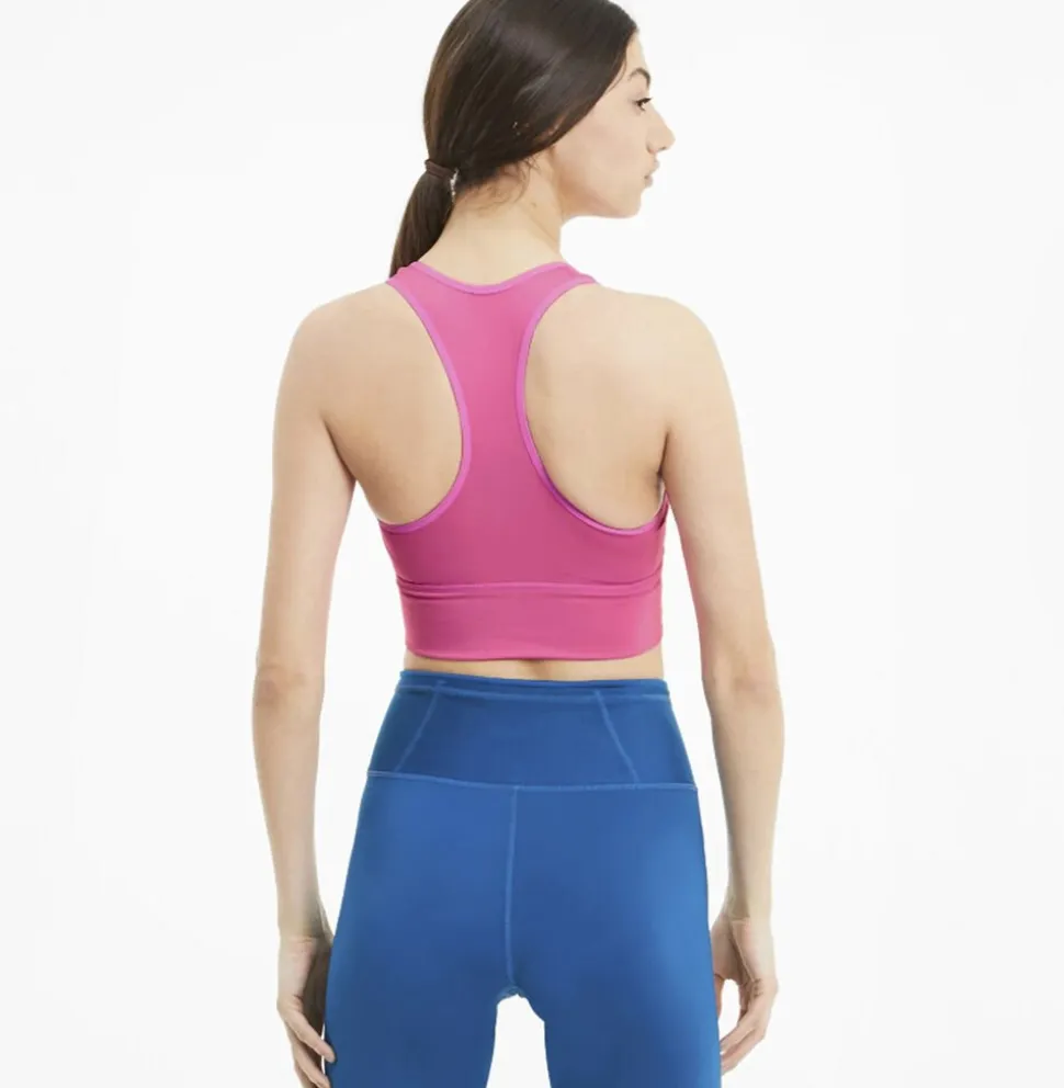 Her leverer Puma tyk selvtillid med deres medium-impact sports BH. Denne atletiske sammensætning byder på en støttende pasform med stabiliserende skulderstropper og en overdreven elastik for ekstra dækning og komfort