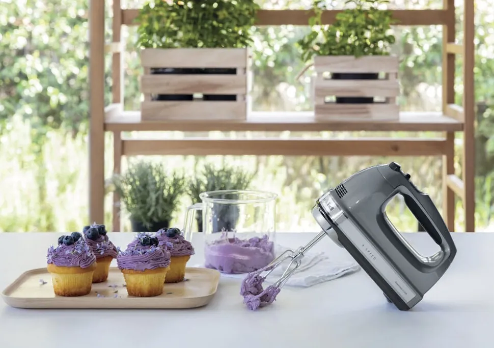 KitchenAid Midline Håndmixer er en effektiv og brugervenlig køkkenmaskine, der er designet til at gøre madlavning og bagning lettere. Denne håndmixer har en præcis elektronisk styring med ni hastigheder, hvilket giver mulighed for en langsom start, så du kan blande ingredienserne uden sprøjt. Den specialdesignede turbo-piskeris i rustfrit stål håndterer tunge blandinger med lethed, hvilket gør den ideel til både lette og tunge opskrifter. Håndmixeren har en kraftfuld motor, der klarer opgaven med et strømforbrug på kun 85 watt, hvilket gør den både effektiv og energivenlig. Den bløde greb sikrer, at du har et godt og komfortabelt greb under brug, og den LED hastighedsindikator gør det nemt at se, hvilken hastighed du bruger. Håndmixeren leveres med standardtilbehør, herunder to turbopiskeris i rustfrit stål, der er perfekte til fremstilling af dej til kager og kiks. Derudover medfølger et ballonpiskeris med 16 tråde, som er ideelt til at lave flødeskum, stiftpiskede æggehvider, saucer og desserter. En puréstav til smoothies, milkshakes, saucer og salatdressinger er også inkluderet, samt to dejkroge til gærdej til brød. Håndmixeren måler L20cm B8cm H15cm, hvilket gør den kompakt og nem at opbevare. Den medfølgende opbevaringspose af bomuld holder tilbehøret organiseret og let tilgængeligt. KitchenAid tilbyder 2 års garanti på denne håndmixer, hvilket giver dig tryghed ved dit køb. Uanset om du er en erfaren kok eller nybegynder i køkkenet, vil KitchenAid Midline Håndmixer være et værdifuldt redskab i dit køkken.