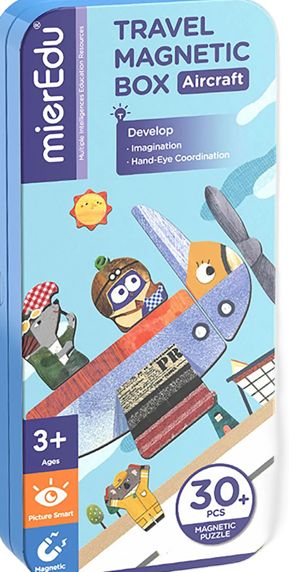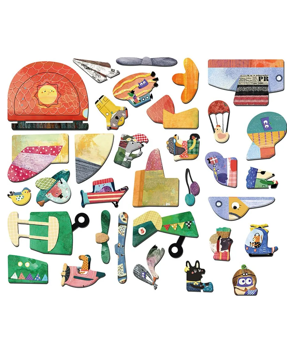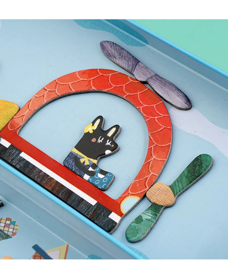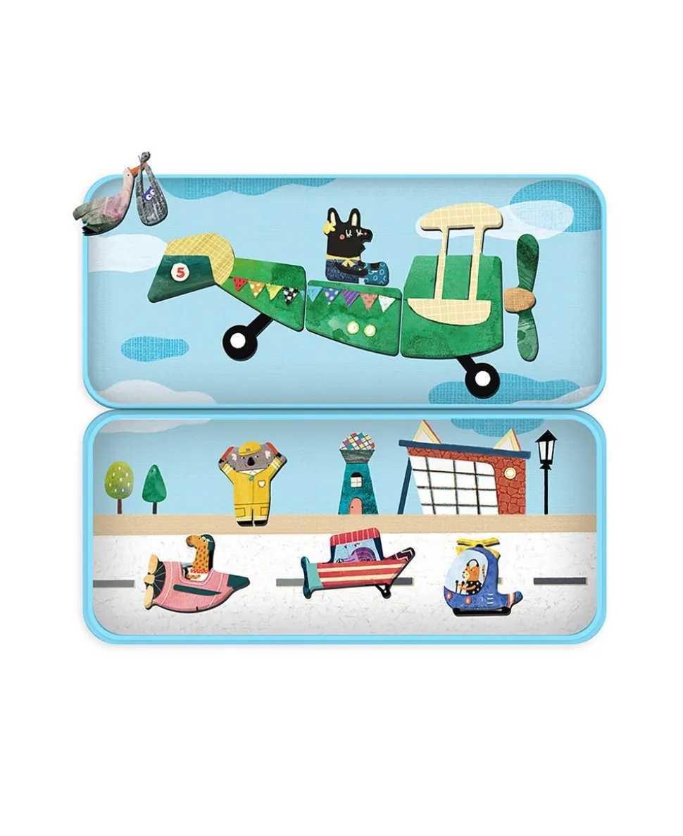 Dette magnetiske legesæt med flyvemaskine-tema indeholder to baggrunde og mere end 30 magnetiske brikker til at sammensætte sine egen figurer og finde på sjove historier.