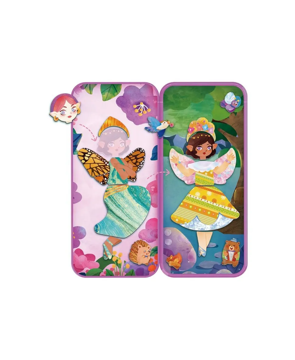 Dette magnetiske legesæt med fe-tema indeholder to baggrunde og mere end 30 magnetiske brikker til at sammensætte sine egen figurer og finde på sjove historier.