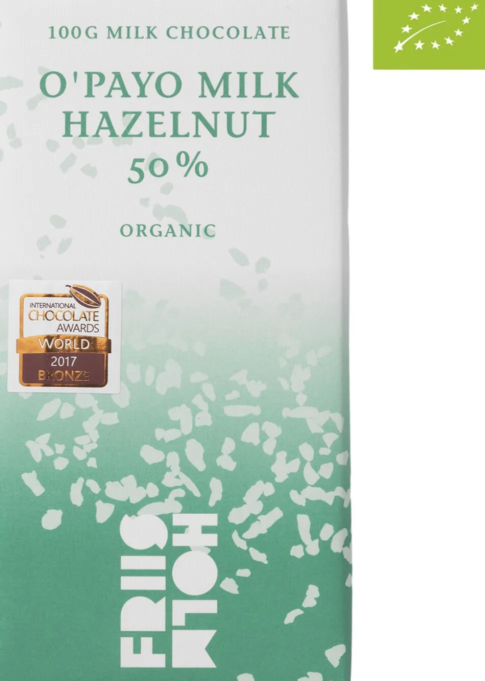 Den klassiske mælkechokolade. O’Payo-kakaoen har syrlighed og frugtighed, som blandes med den cremede økologiske mælkepulver. Noter af honning og fløde. De økologiske hasselnødder kommer fra Piemonte, Italien.