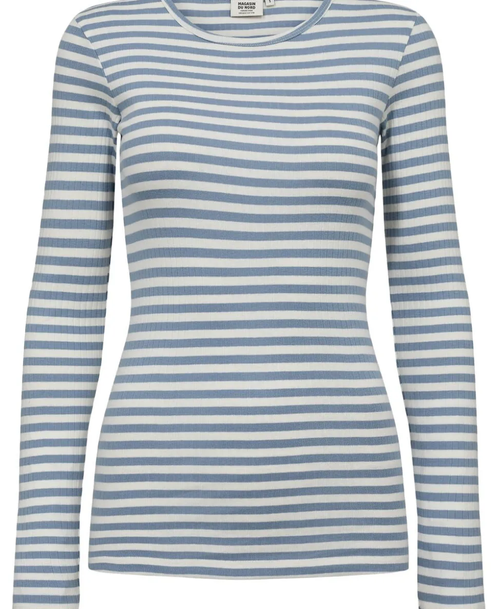 Bluse fra Magasin du Nord Collection i den blødeste kvalitet af 100% økologisk bomuld med GOTS-certificering. Blusen er enkel i modellen med lange ærmer, en smal ribkant langs den runde halsudskæring samt en lækker ribstruktur, der giver blusen en tætsiddende pasform. En skøn bluse i den lækreste kvalitet.