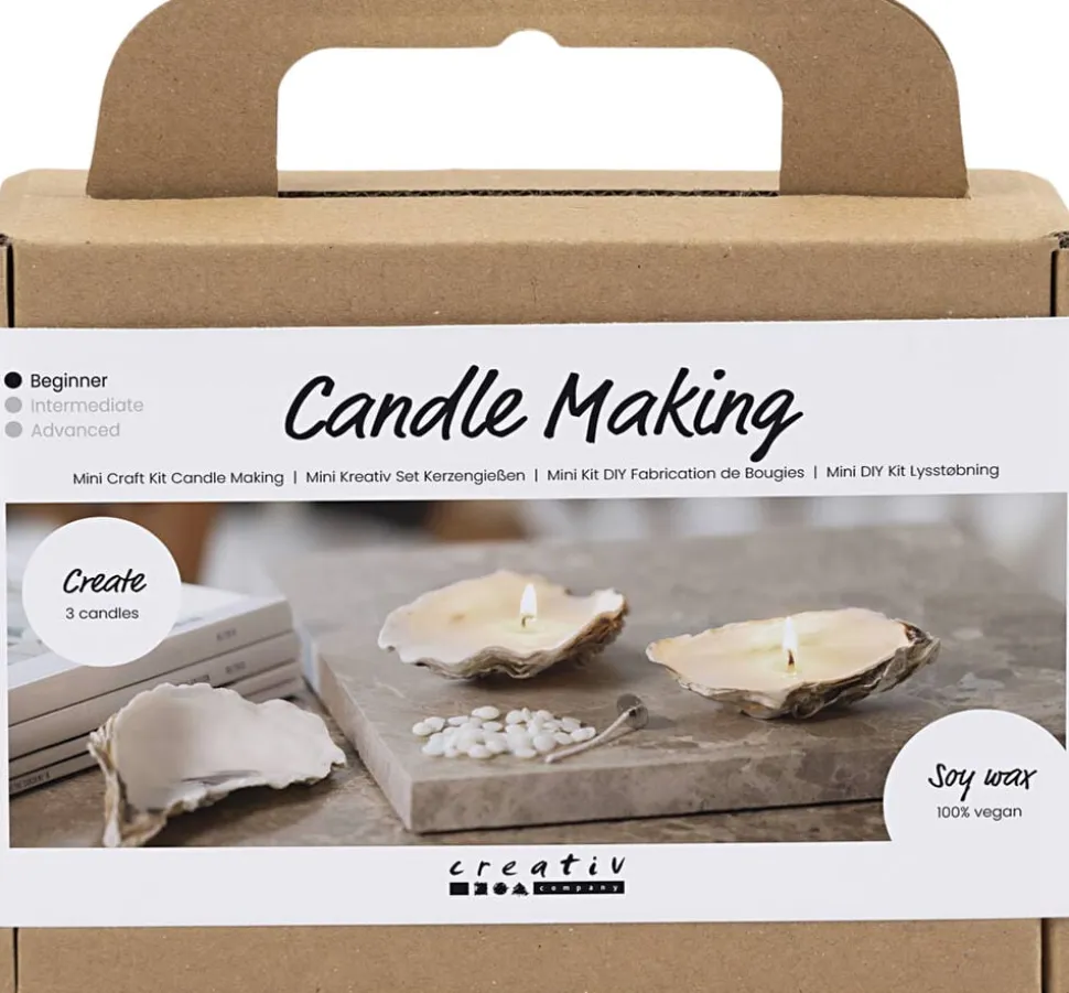 Med dette kit kan du støbe naturlige soyalys i smukke østersskaller. Indeholder alle de materialer du skal bruge, og al den vejledning du behøver. Trænger du til lidt hjemlig hygge, så prøv vores Mini DIY Kit til lysstøbning. Her kan du med østersskaller og soyavoks støbe de fineste lys til hjemmet. Soyavoksen er 100 % vegansk brænder helt rent og soder meget mindre end traditionelle stearinlys. Samtidig har østersskallerne en flot, organisk form, som harmonerer perfekt med tidens indretningstrend. Har de færdige lys svært ved at stå stabilt, kan du nemt sætte et par silikonedutter under bunden.