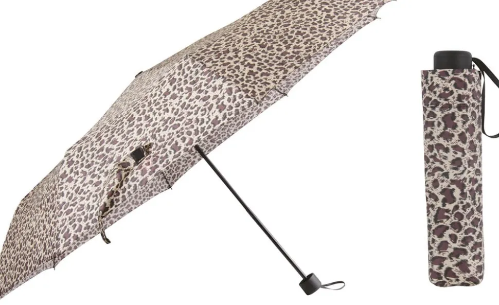 Smart og stilren paraply med leopard mønster. En mindre model som passer perfekt i tasken.