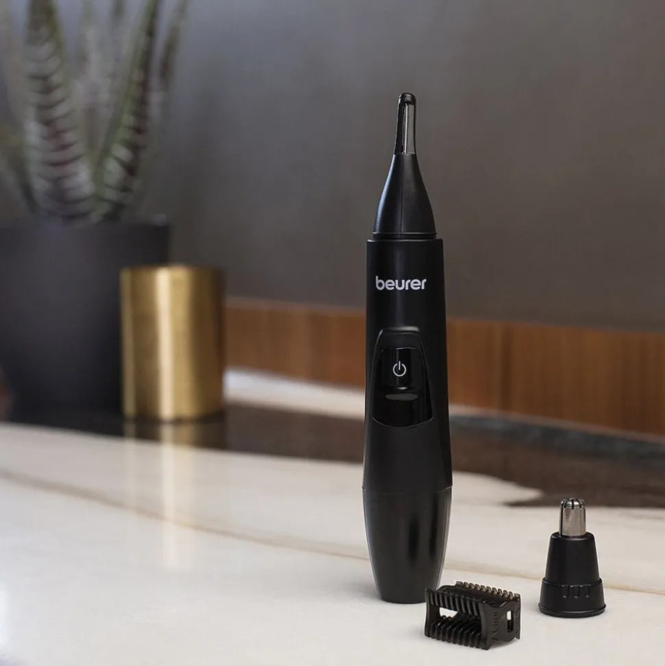 MN2X Præcisionstrimmer fra Beurers Men Care serie med skæreblade i høj kvalitet. MN2X er en alsidig trimmer, der er god til flere formål. Præcisionstrimmeren er god til: -Trimning af næse- og ørehår -Trimning af øjenbryn i form og længde -Præcisionstrimning af skæg og hårgrænse Der medfølger 3 tilbehørsdele. Skæretilbehøret er lavet i rustfrit stål for at sikrer maksimal beskyttelse af huden. Der medfølger 3 tilbehørsdele:1 stk. skæreblad til næse og ørehår1 stk. vertikalt skæreblad til præcisionstrimning ved øjenbryn og skægkant1 stk. trimmekam (6 mm og 3 mm) til trimning af buskede øjenbryn Det er muligt at fjerne tilbehørsdelene og rengøre det under rindende vand. Trimmeren er stænkafvisende (IPX-4). Trimmeren er batteridrevet, og der medfølger 1 stk. AA batteri i pakken. Der medfølger tilmed beskyttelseshat, opbevaringstaske og rengøringsbørste. Produktet måler 16. 3 x Ø 2. 9 cm og vejer kun 57 g uden batteri. Du får 3 års garanti.