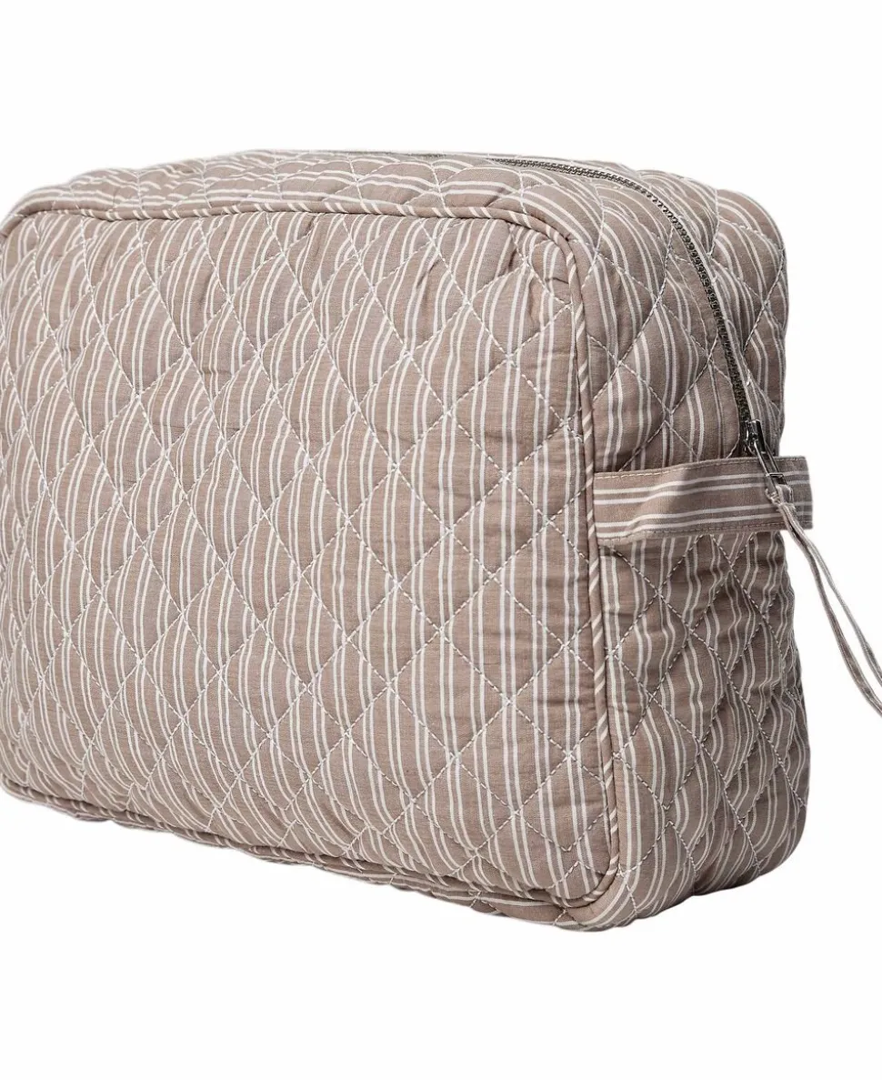 Toilettaske fra Magasin du Nord Collection i den blødeste kvalitet af 100% økologisk bomuld med GOTS-certificering. Toilettasken består af ét stort rum med lynlåslukning samt mindre inderlommer. Derudover har toilettasken et lille håndtag samt fine vatterede syningsdetaljer. En skøn toilettaske i den lækreste kvalitet.