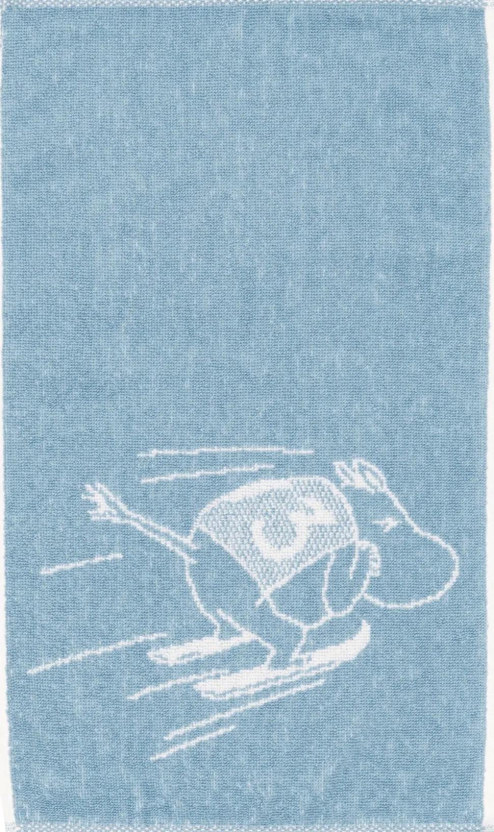 Vintersportseventyrene fortsætter, da Mumitrolden beslutter sig for at deltage i skihopkonkurrencen i et forsøg på at imponere Snorkfrøken. Når Snorkfrøken finder ud af, hvor farligt det er, forsøger hun at stoppe Mumitrolden men det er for sent! Mumitroldens svæv i luften er imponerende, men ender i træerne. Moomin Arabia badehåndklæde 70×140, Skihop