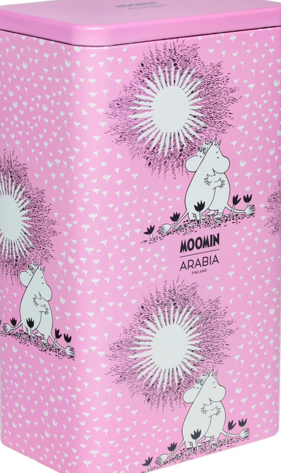 Tilføj lidt glæde til dine kaffeøjeblikke med en smuk pink Moomin-kaffedåse, illustreret med det søde kærlighedsmønster, der byder på Moomintroll og Snorkmaiden, der omfavner hinanden. De to kan lide at spille og tilbringe tid sammen, men deres forhold er også romantisk. Moomin Arabia-kaffedåse 19,2 cm, kærlighed