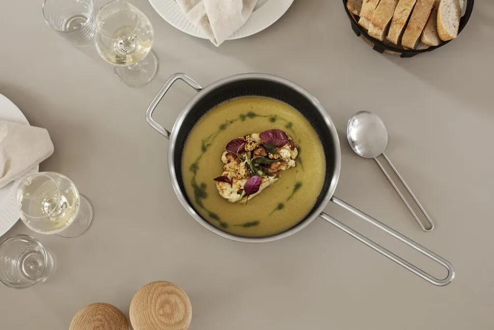 Tåler maskinopvask og rengøring med stålsvamp. Belægning er fri for fluorstoffer. Kan stables.