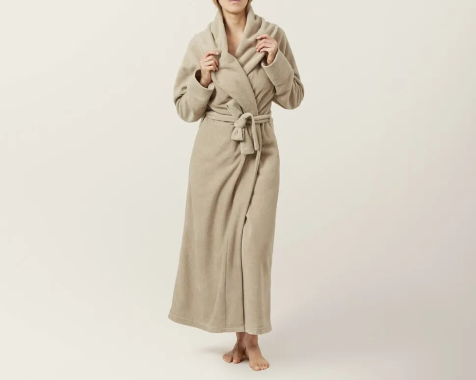 Klassisk og sanselig morgenkåbe i blødeste og letteste fleece. Elegant snit med stor krave og dybe lommer populært valg hos vinterbadere.