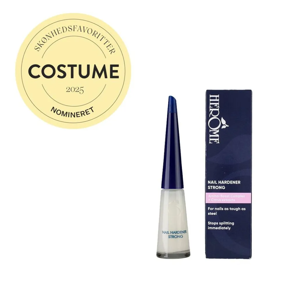 Det første produkt som gjorde Herôme berømt med eet! Herôme Nail Perfection Neglehærder. Efter en behandling med dette produkt på kun 14 dage har du stærke negle der ikke flækker! Neglene bliver ved brug af HERÔME Nail Perfection neglehærder ikke kun stærke og sunde, de får også deres naturlige glans tilbage og spalter ikke mere. Dine negle bliver sunde og lange!