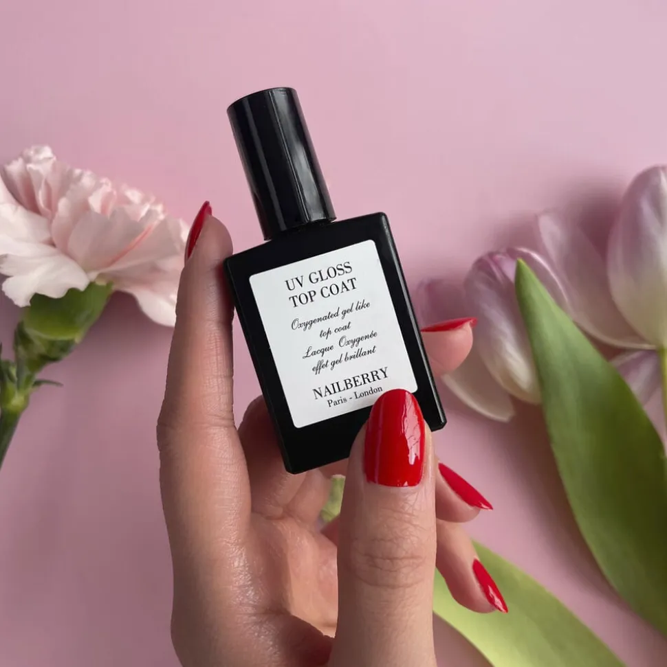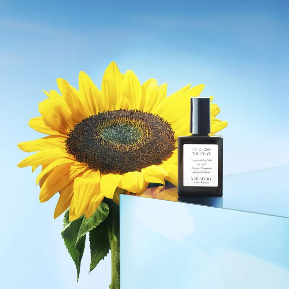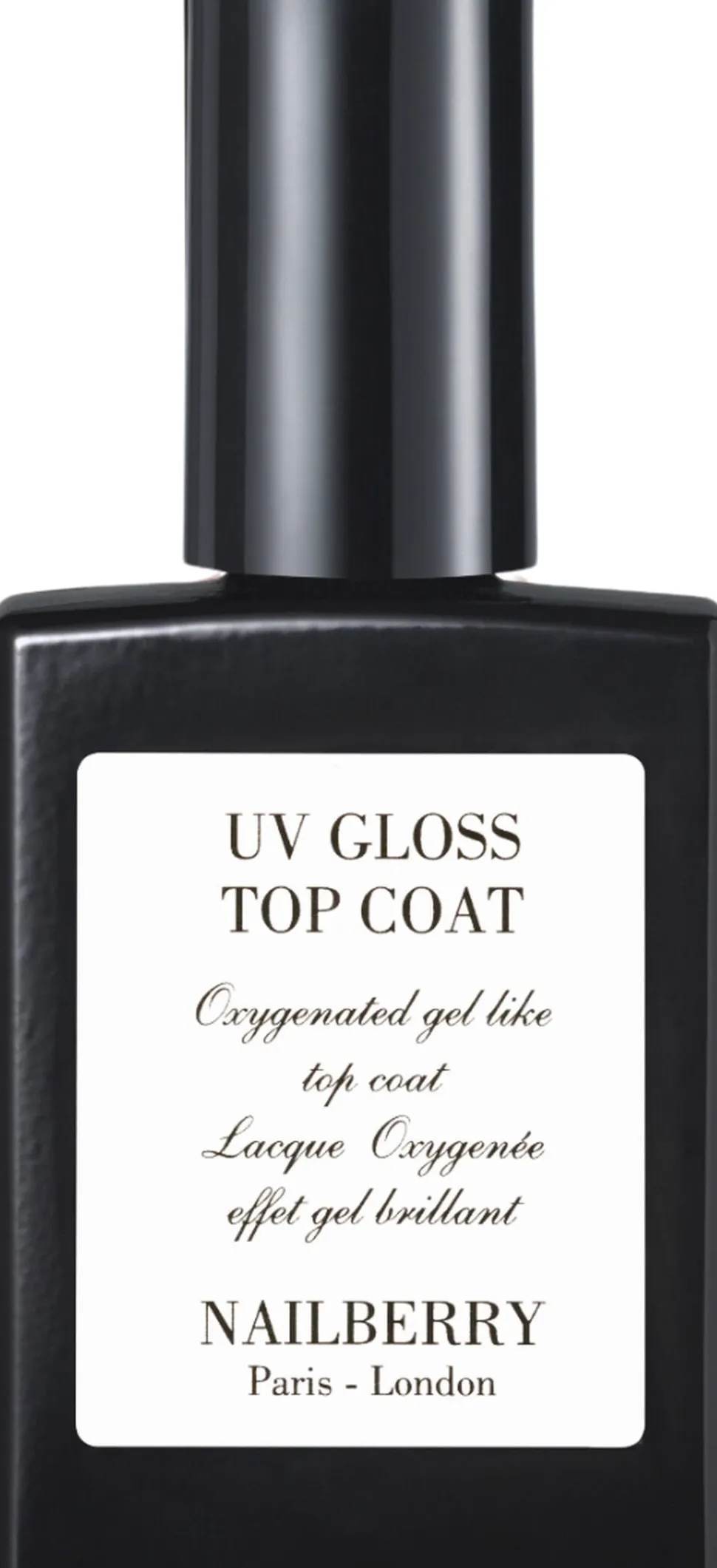 Velkommen til en revolution inden for gel-negle-rutine hjemme. Nailberrys patenterede, banebrydende UV Gloss Top Coat bevarer de åndbare, fugtgennemtrængelige, negle-venlige kvaliteter, som Nailberry er blevet så berømt for, samtidig med at den sætter nye standarder i kategorien beskyttende topcoat. Formlen er 25-fri, vegansk og cruelty-free og behøver ingen UV- eller LED-lampe. I stedet bruger den 3D-reaktiv teknologi til at hærde via dagslys, hvilket skaber en ultra-slidstærk, hurtig tørrende og spejllignende blank finish over din valgte neglelakfarve. …og så kan den fjernes nemt med vores acetone-fri Clean Nail Color Remover – ingen iblødsætning påkrævet!Farvel til afskalning, revner og falmende farve. Hej til fyldige, perfekte, salon gel-effekt glans i dagevis… og dagevis…!Glat, jævn, flydende konsistensHurtigtørrende, krystalklar overfladeEkstraordinær holdbar finishuigennemsigtig sort flaske forhindrer uv-skader på formlen og forlænger holdbarhedenTrin 1 – påfør et lag Strengthen & Breathe Base CoatTrin 2 – påfør to lag af din valgte nuance af L’Oxygéné polishTrin 3 – når den er overfladetør, afslut med et lag UV Gloss Top Coat, forsegl den frie kant af hver negl og lad den tørre heltFor at fjerne – påfør Clean Nail Color Remover på en vatrondel, og stryg derefter over neglene. Tag din hjemmemanicure til nye højder med vores revolutionerende gel-lignende topcoat. Vores banebrydende formel er 25-fri, vegansk og åndbar og hærder via sollys for at forsegle farvernes liv, tilføje spejllignende glans, modstå spåner og i høj grad forlænge poleringsslid – uden behov for UV- eller LED-lamper. Desuden indeholder denne glatte, hurtigttørrende formel UV-filtre for at beskytte mod falmning eller misfarvning. Hej fyldigere, blankere, salon-standard gel-lignende negle – alt sammen fra din egen sofa!ANVENDELSE:For de bedste resultater og den ultimative åndbare, naturligt smukke manicure skal du først påføre et lag Strengthen & Breathe Base Coat under to lag af din valgte nuance af L’Oxygéné polish. Når den er berøringstørret, afsluttes med et enkelt lag UV Gloss Top Coat, lukke den frie kant af hver negl og lad den tørre helt. Betryggende nem at fjerne – ingen iblødsætning nødvendig. Påfør blot prisvindende, acetonefri Clean Nail Color Remover på en vatrondel, og fej derefter over neglene.