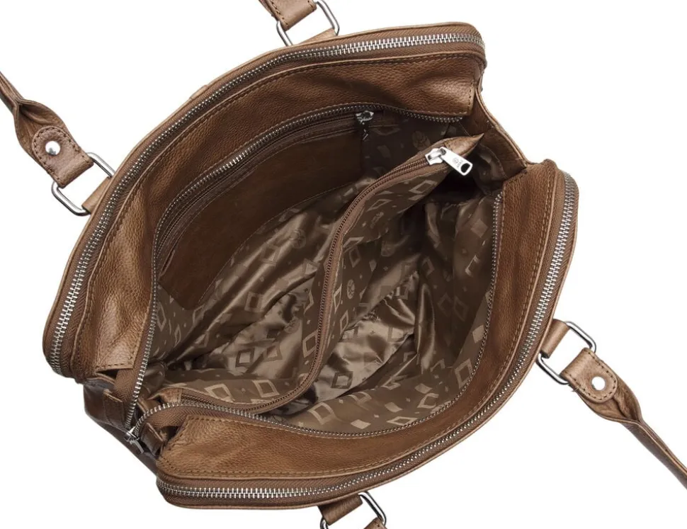 Gerda jobtaske i Napoli Kalveskind. Tasken har to gode hanke og en aftagelig skulderrem, som kan justeres i længden. På fronten er der en stor lynlåslomme. Tasken er delt op i 3 som hver lukkes af en lynlås. Inden i er der god plads, en lynlåslomme, en læderlomme til en mobil samt foret lomme til PC og en tablet. Vi anbefaler Adax protectionsspray.
