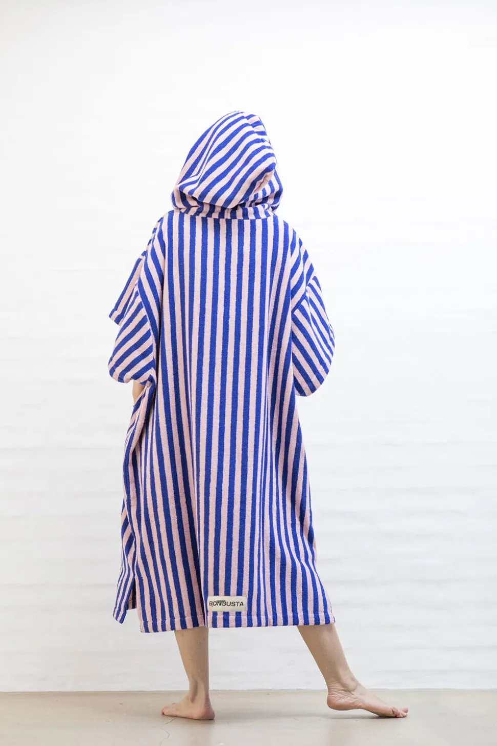Inspireret af surf-verdenens afslappede vibes er Naram Poncho omhyggeligt fremstillet af 100% kæmmet bomuld og dobbeltvævet i en blød 385-gsm kvalitet. Dette giver høj sugeevne og en chill oplevelse, hver gang du tager den på.Naram Poncho er designet, så du kan skifte dit våde badetøj under den, mens du holder dig tildækket og varm efter f.eks. svømmetræning eller efter en svømmetur på stranden. Den fungerer også nemt som det ultimative hygge-outfit. Bare tag den på og du har det perfekte outfit klar til hvad som helst!Hætten er superpraktisk, når man kommer op af det kolde vand, plus, den store kænguru frontlomme sikrer, at du kan varme dine hænder eller gemme dine væsentlige ting, mens du nyder ultimativ komfort.