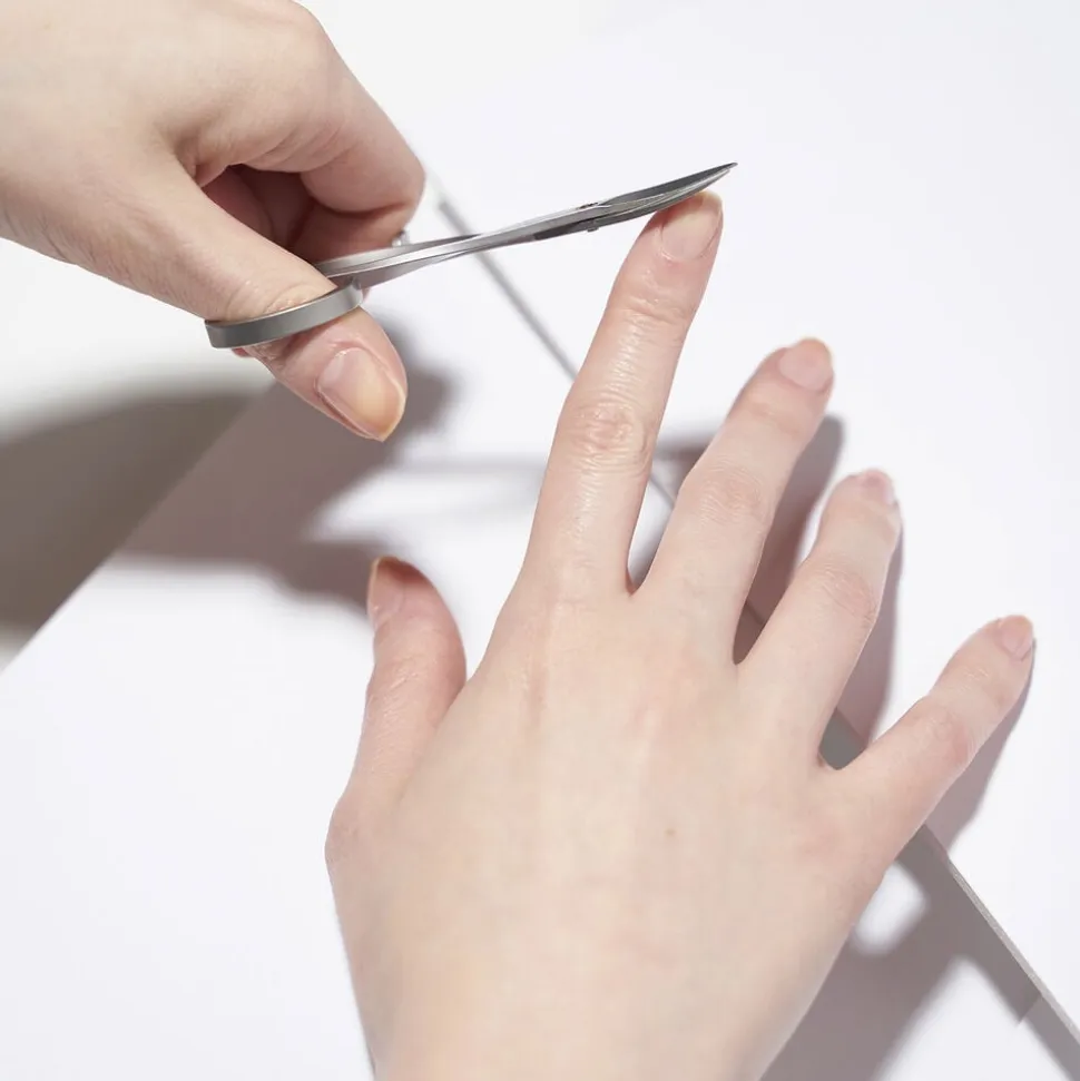 Et elegant design med med ekstra skarpe, tynde spidser og et buet skær, som sikrer en præcis klipning af neglerødder og flossede neglebånd. Rustfrit stål.