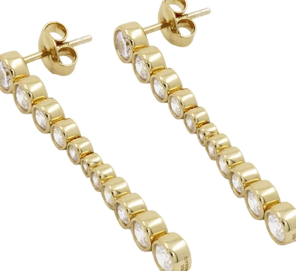 Et par 925 sterlingsølv øreringe med en 18k guldbelægning i et unikt design med funklende sten i et skiftende størrelsesforløb.