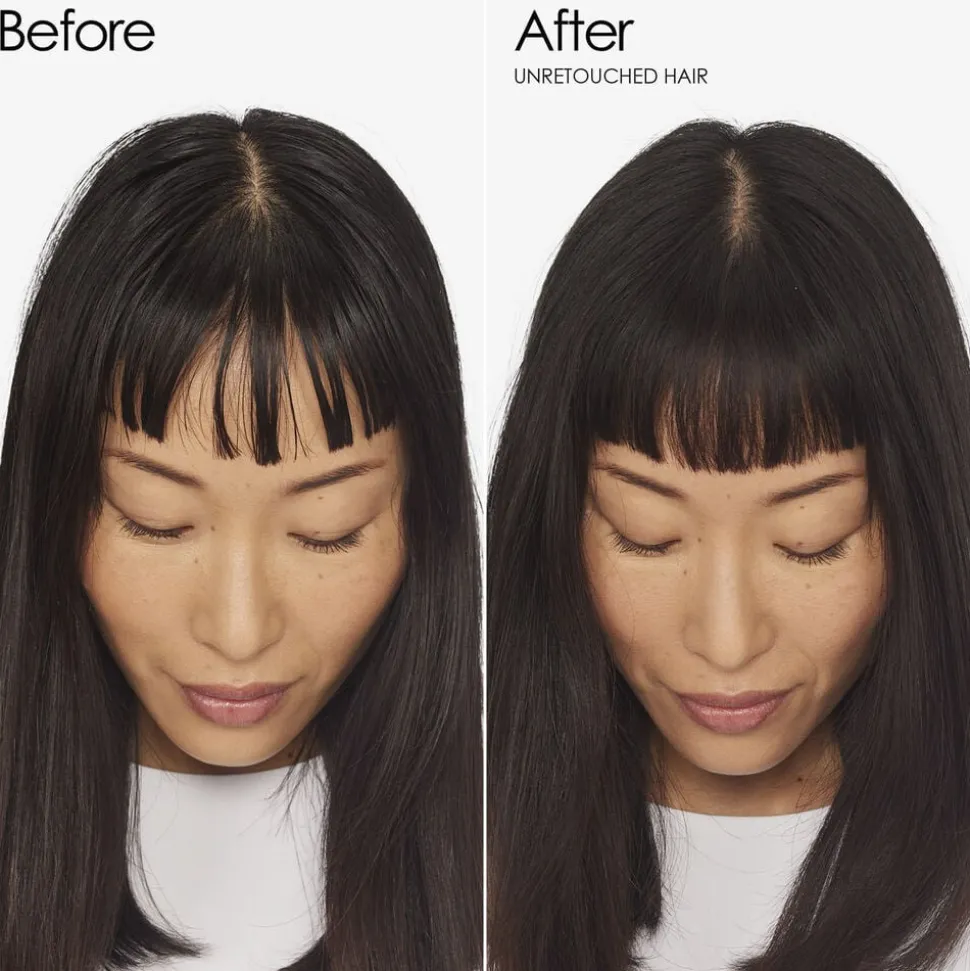 Ryst flasken godt. Hold flasken i en afstand på ca. 20 cm og spray gennem håret med fokus på hovedbunden. Vent 30 sekunder og massér derefter produktet ind med fingrende