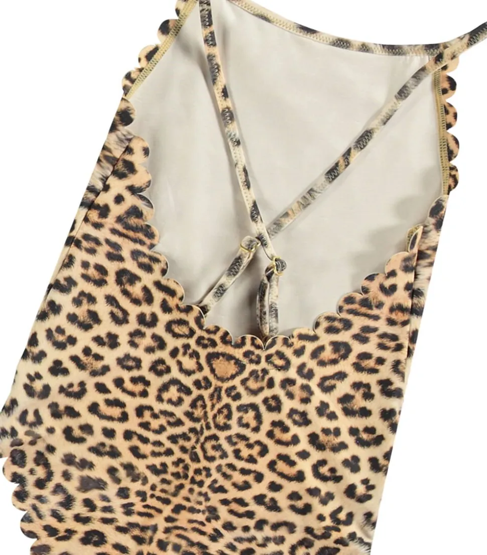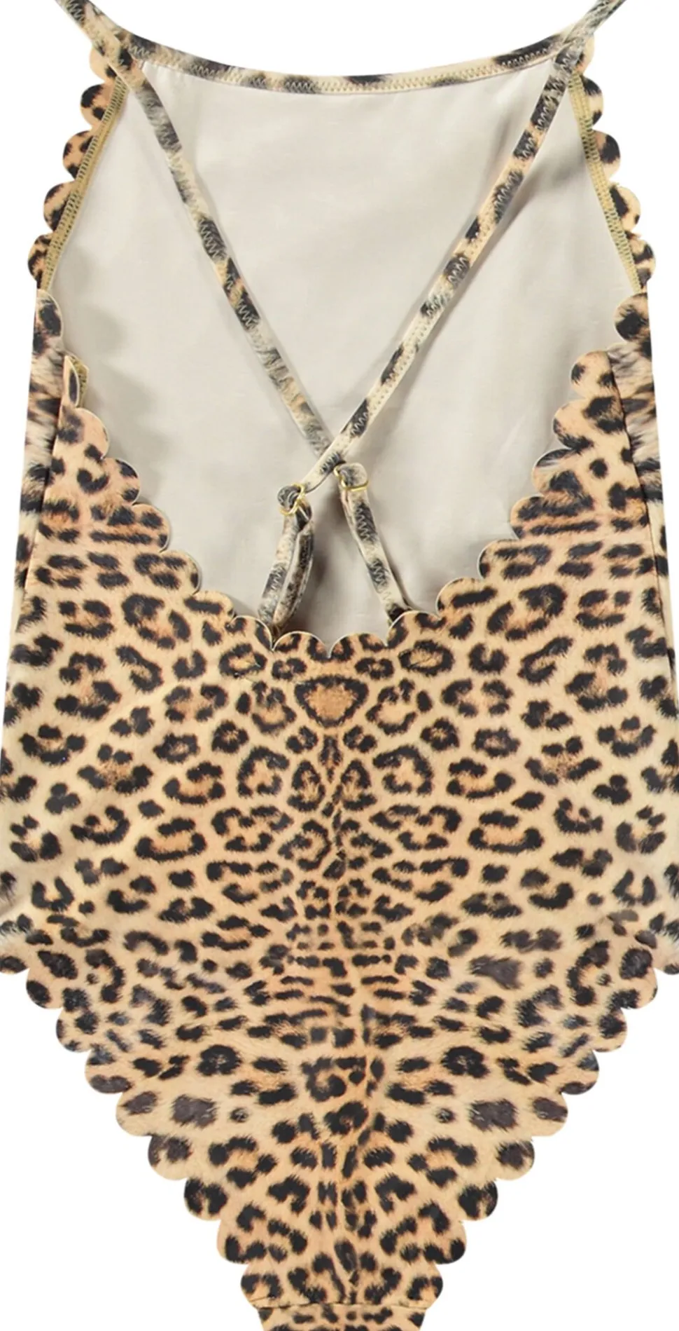 Badedragt til aktive børn fremstillet i genanvendt polyester med UV-beskyttelse 50+. Badedragten har en klassisk pasform, bløde bølgende kanter, er helforet og har en dyb ryg med smalle, justerbare stropper, der krydser på ryggen.